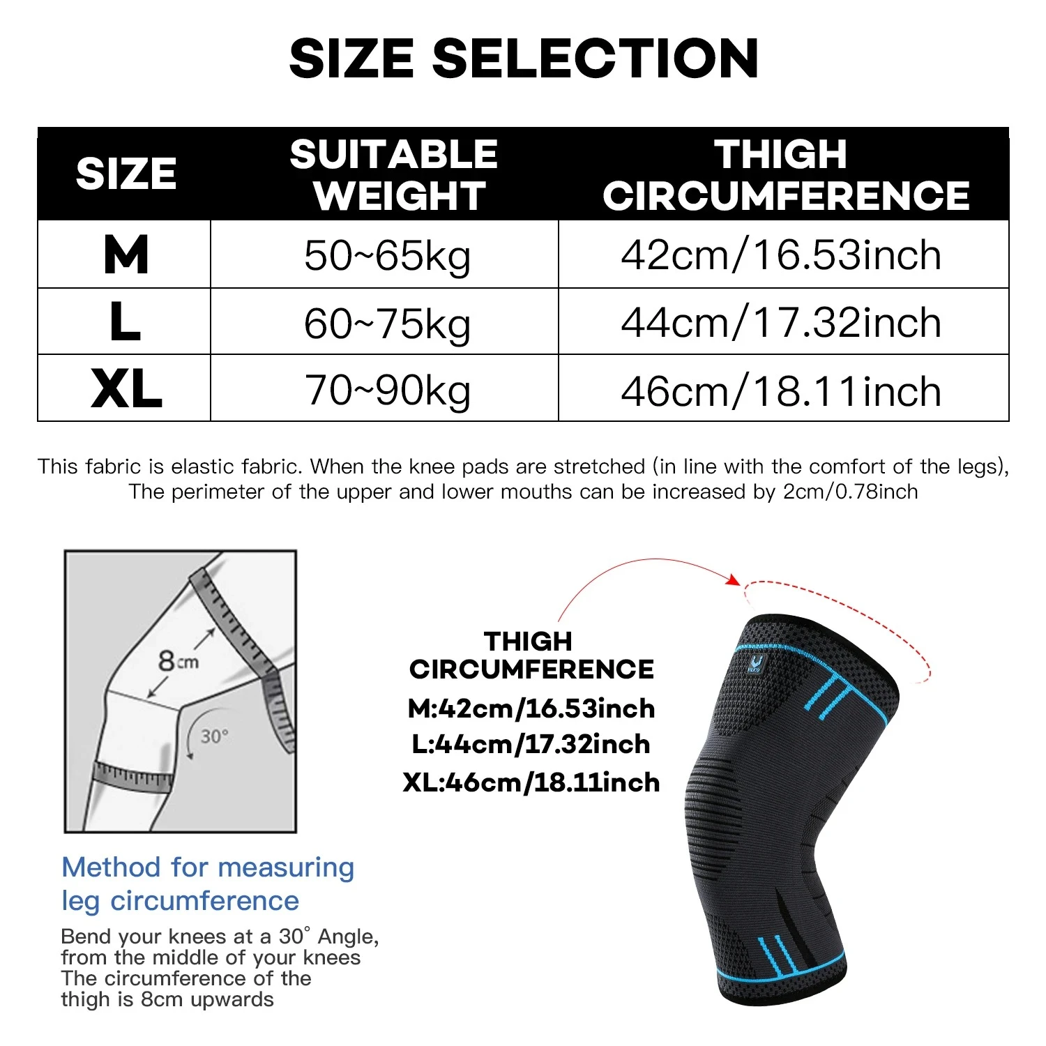 1 Pc Compression Knee Support Sleeve Elastic Knee Pads Brace Springs Gym Sports