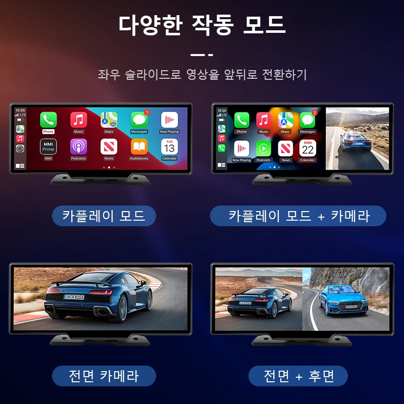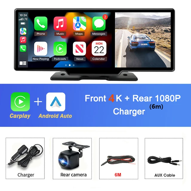 10.26" Car DVR Carplay Android Auto Dashcam 4K 3840*2160 Front And 1080P Rear Ca