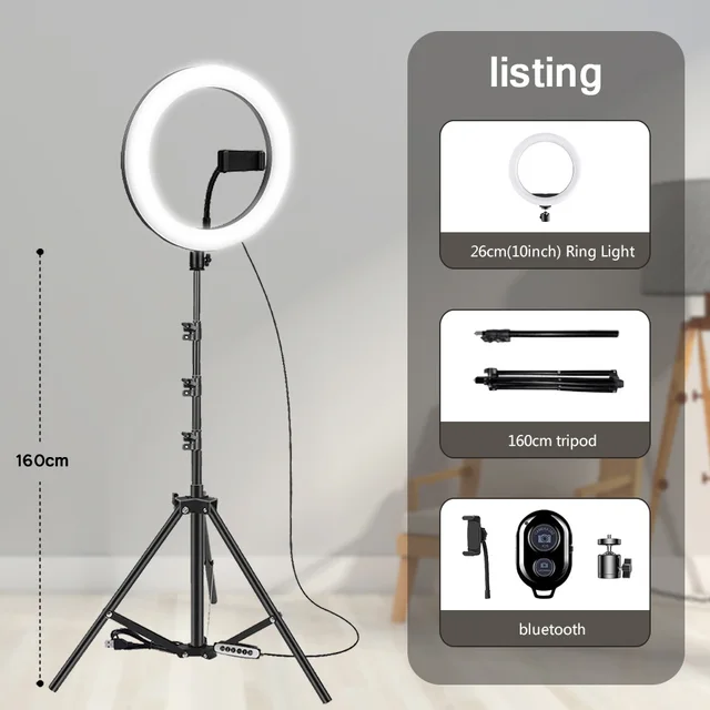 10" 26cm LED Selfie Ring Light Photography Video Light RingLight Phone Stand Tri