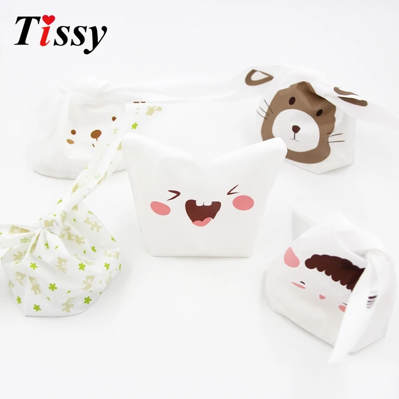10/50pcs/lot Cute Rabbit Ear Bags Cookie Plastic Bags&Candy Gift Bags For Biscui