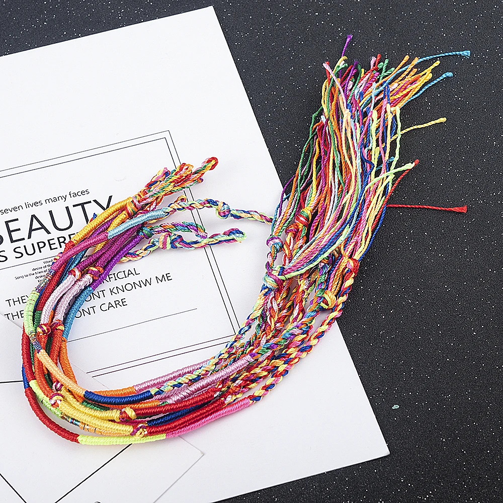 10 Pcs /Set New Rainbow Color Mix Braid Friendship Bracelets for Women Jewelry G