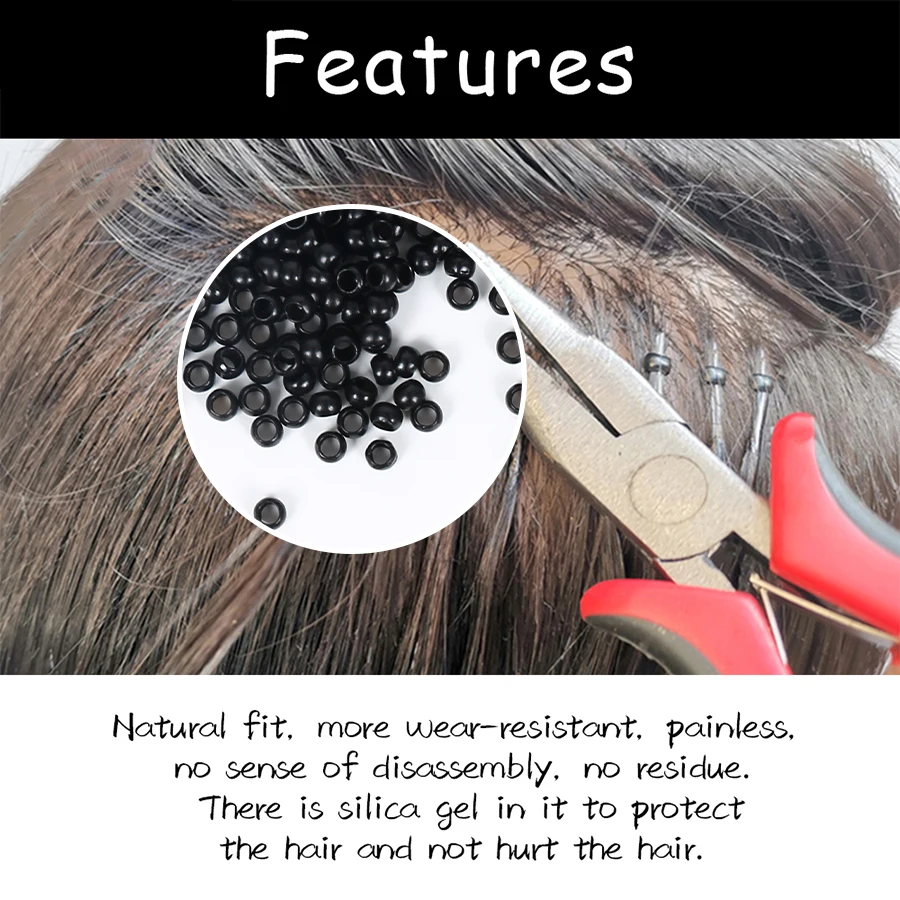 1000Pcs/Bottle Micro Rings Tubes Micro Rings Links Beads For I Tip Hair Extensio