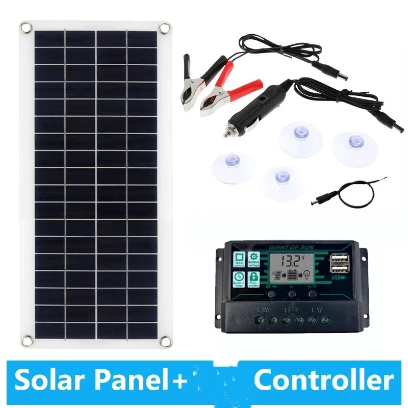 Solar Panel Features: 1. Made of high-quality materials, environmentally friendly, durable and delicate. It has a high conversion rate. 2. Dual-output solar panels with USB interface to meet any of your requirements. 3. Environmental protection and pollution-free, realizing the conversion of solar energy to electric energy 4. It has a wide range of applications and can be used in many places, such as automobiles and small household appliances. 5. A solar panel is a device that directly or indirectly converts solar radiation into electrical energy by absorbing sunlight. Compared with ordinary batteries and rechargeable batteries, solar panels are more energy-efficient and more environmentally friendly. Specification: Name: Flexible Solar Panel Material: Polysilicon Solar panel voltage: DC12-18V Single Solar panel power: 1000W Output :USB 5V ,DC 12V Number of USB ports: 2 Size: 43 * 20cm Color: as show Controller Features: 1. When using the solar controller to charge the battery, the controller will automatically check the voltage. 2. When transferring positive and negative charges to the controller, do not reverse. 3. Connect the solar panel to the solar controller. System connection: 1. Connect the battery to the charge regulator-plus and minus. 2. Connect the photovoltaic module to the regulator-plus and minus. 3. Connect the consumer to the charge regulator-plus and minus. Note: Strictly comply with solar panels and solar controllers. Otherwise, the solar controller may be damaged. Specification: Material: PVC Voltage: 12V/24V automatic identification Rated charging current: 60A Rated discharge current: 20A The highest photovoltaic voltage: 12V system<25V/24V system<50V USB output: 2 USB outputs, maximum 5V/2A Standby current: <10mA Working temperature: -35℃~+60℃ Certification: CE RoHS Size: 180 * 90 * 45mm Color: as show Packing Included:(as you choose) 1 X Solar Panel 1X Alligator Clip 1 X Car Charger 4 X suction cup Note: 1. Please allow 1-3cm (0.4-1.18") difference due to manual measurement and slight color variation for different display setting. 2. Due to the light and screen difference, the item's color may be slightly different from the pictures. Please understand.