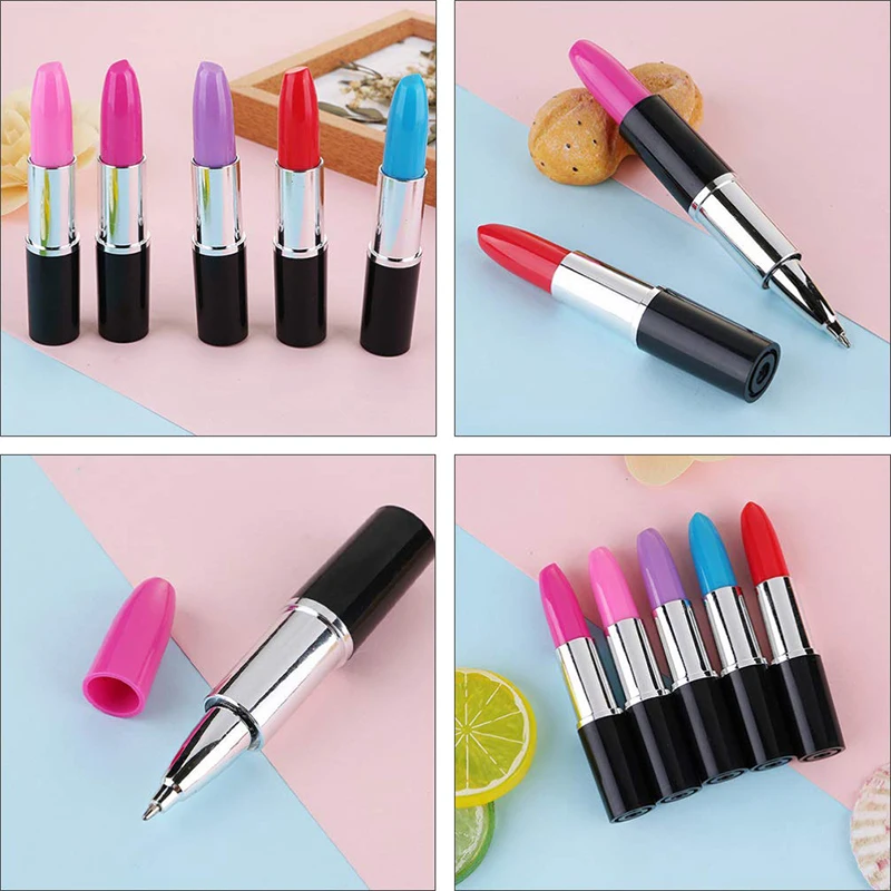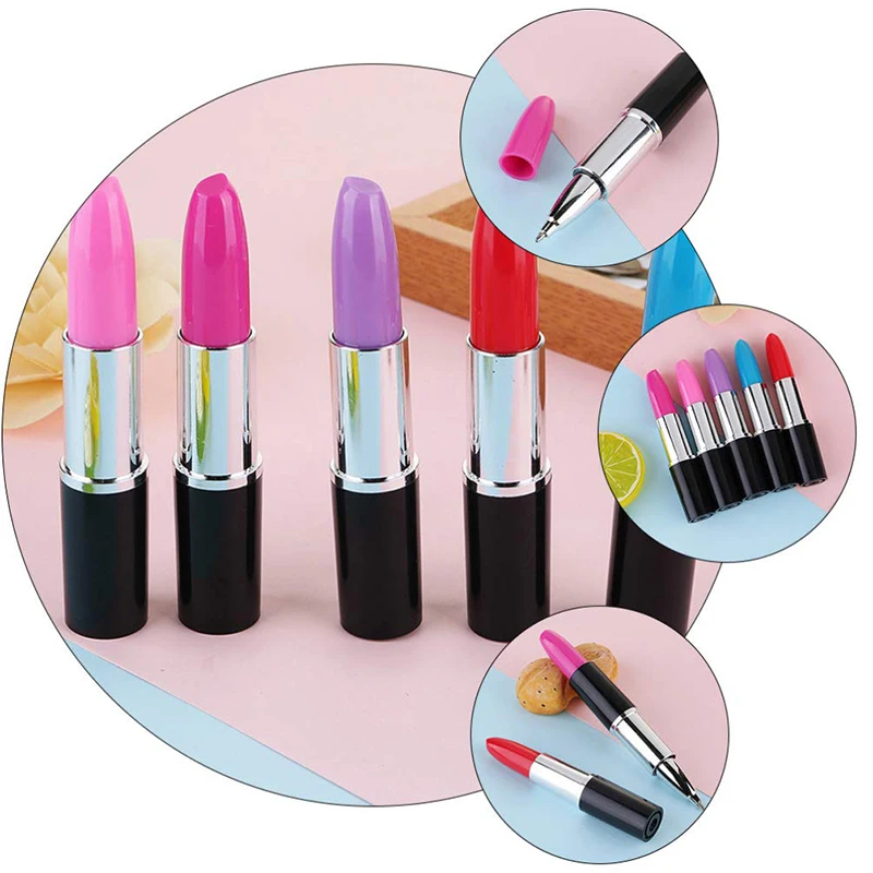 10Pcs Ballpoint Pen Lipstick Shape Novelty Pens Lipstick Ink Pens Mini Ballpoint