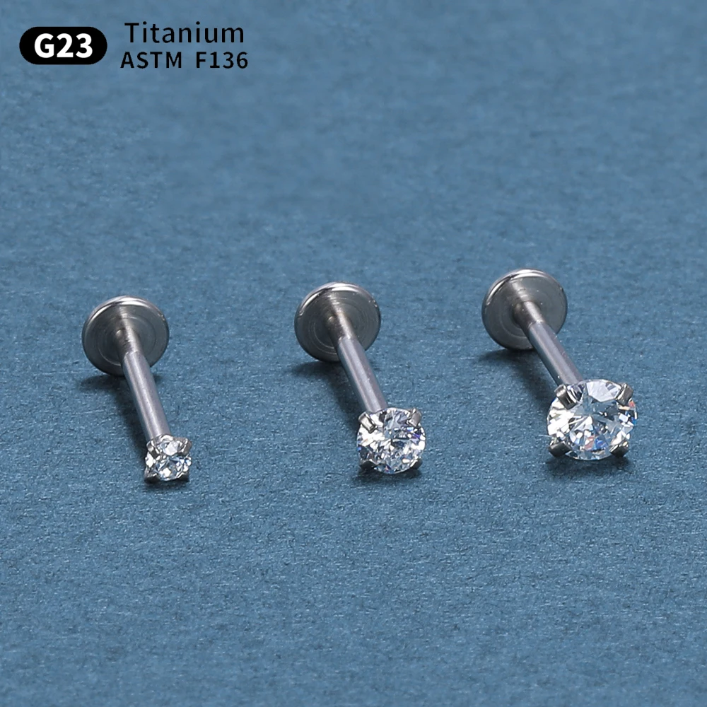 10pcs G23 Titanium Piercing Labret Lip Stud Zircon 20/18/16g Small Earring Foe W
