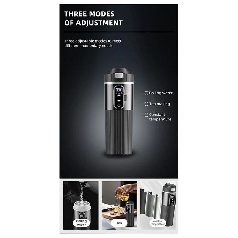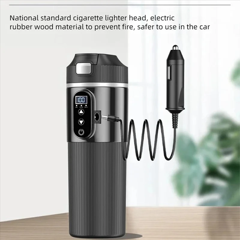 Adopt touch button function. Water cup without water anti-dry burning function. Abnormal power supply voltage protection function. Current overload protection function. Temperature control probe failure self-diagnosis function. Failure self-diagnosis function of the heating pad. Buzzer alarm function Warm Tip: When heating the cup, the water will boil in the heating cup, and then keep the temperature to the original set temperature, please open the cup mouth when heating. Product Name: Car Heating Cup Capacity: 500mL Voltage: Car 12V-24V Power: 70W Colour:Black Material:stainless steel Package Contents: 1 x Heating Cup 1 x Power Cord 1 x English instruction manual Only the above package content, other products are not included. Note: Light reflection and different displays may cause the color of the item in the picture a little different from the real thing. The measurement allowed error is +/- 1-3cm.
