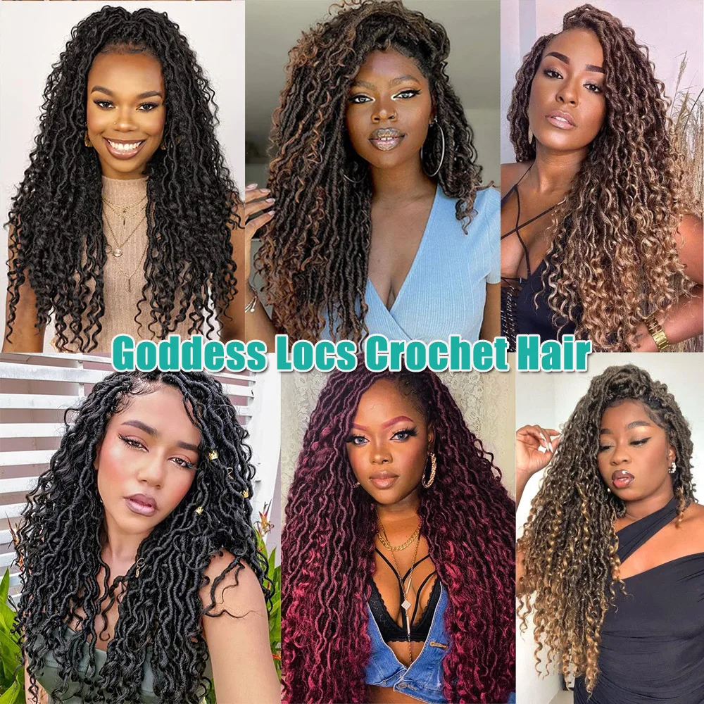 18 22 Zoll synthetische Häkel borten Haar göttin Faux Locs lockige Wellen enden