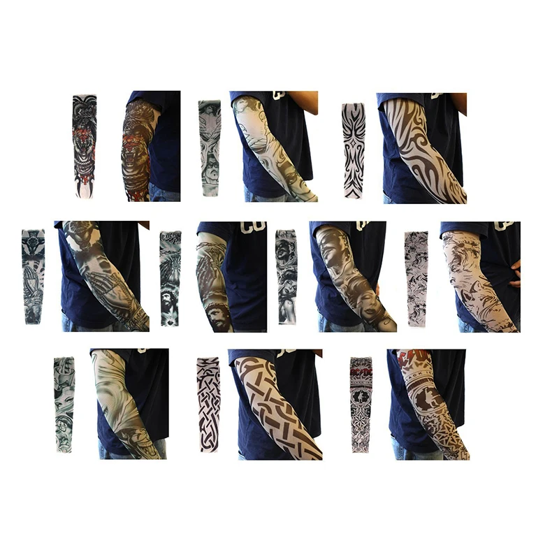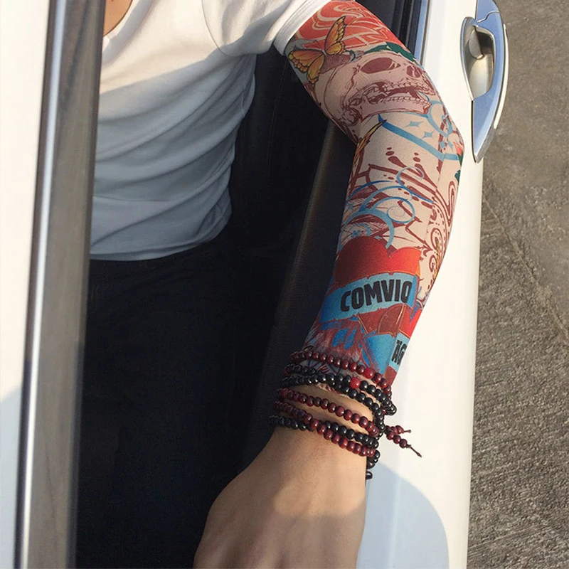 1PCS Men Long Fake Warmers Summer Tattoo Sleeves Sun Protection Cover Outdoor Gl