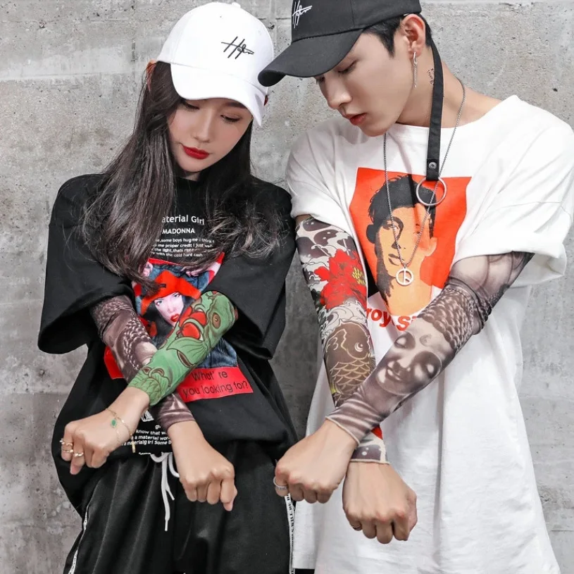 1PCS Plus Size Summer Riding Driving Tattoo Sleeve Print Arm Sleeves Sun Uv Prot