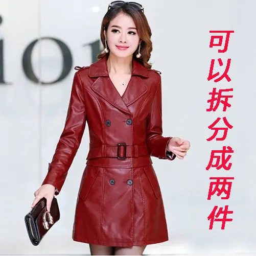 2023 fall top Compound lambskin leather moto jacket Detachable women clothing tr