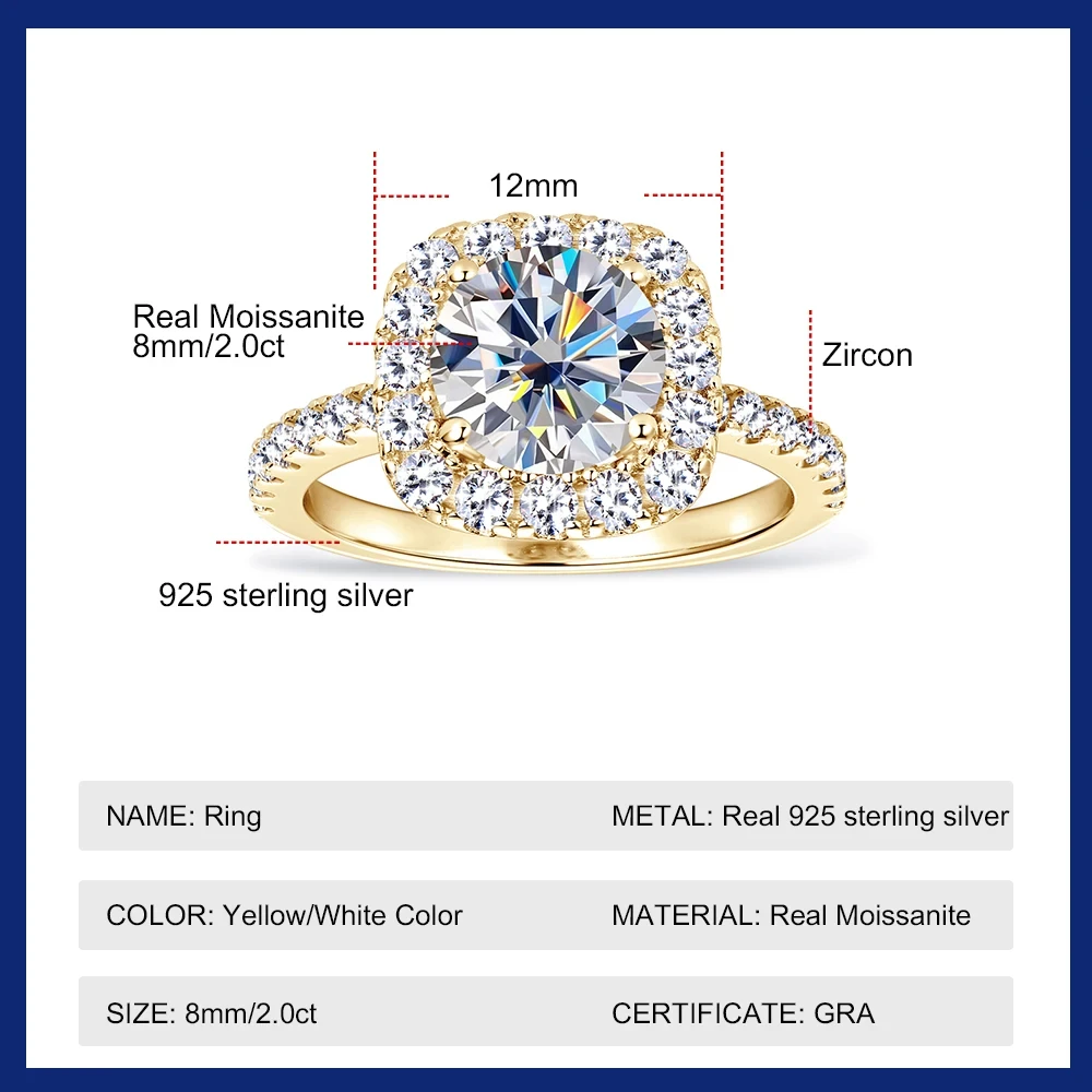 Sweetrain 2CT GRA Certified Moissanite Ring for Women 8MM Brilliant Diamond Wedding Finger Rings 925 Sterling Silver Band Plated 18K Gold Material :S925 Sterling Silver + 18k gold plated Main Stone: 2ct/8mm Moissanite Side Stone: Zircon Color : D Color Clarity:VVS1 For: Women and Lady Use For : Party Wedding and Birthday Package: Ring+Gift Box Certificate: GRA Certificate ![]() ![]() ![]() ![]() |