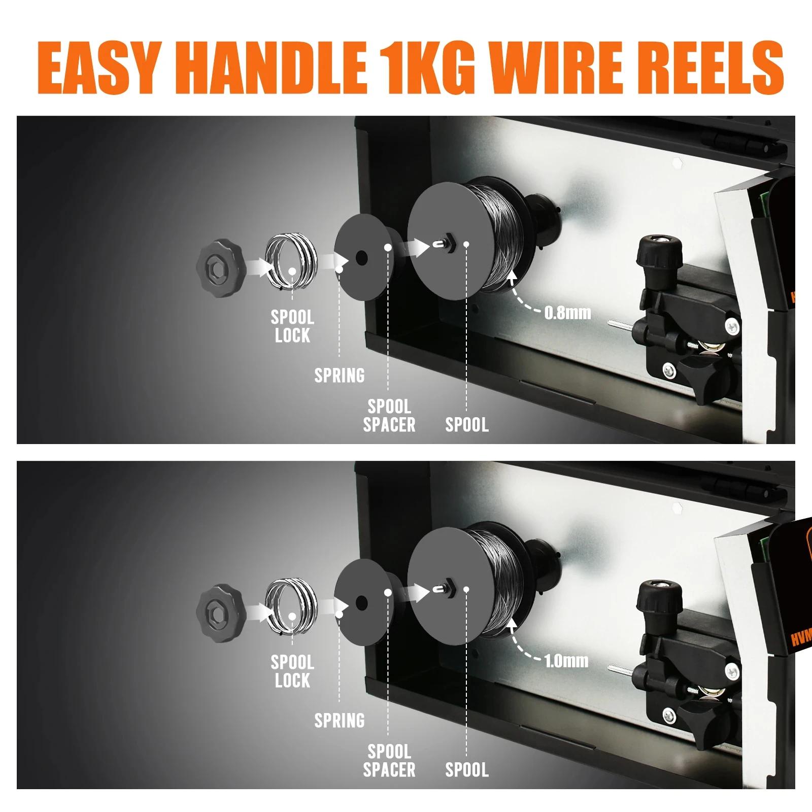 UPGRADE NEW HVM200 Inverter: 【Complete Functions】HZXVOGEN MIG welding machine has MIG/MAG and MMA/ARC 2 in 1 function. Equipped with intelligent one-button control system and digital display. MMA welders have better control of welding current and speed. Meet your welding needs. 【Safety Protection】 Cored wire welding machine has built-in over-current, over-voltage and over-temperature protection. Welding equipment shuts down automatically in case of overheating and overload. Running fan cooling system reduces dust ingress to the machine and prolongs its life. 【Compact Design】Size is suitable for home use. Smaller, lighter and more portable than traditional MIG welders. Front and rear of the fuselage are designed with heat sink plastic to reduce the possibility of the machine malfunction due to excessive temperature. Size: 170*152*155mm, Weight: 3.7kg. 【100% Money Back Guarantee】HZXVOGEN 2 Years Inverter Welder Warranty! If you're not satisfied with your purchase, we'll replace or refund you within 60 days. Just buy a HZXVOGEN machine with confidence! Let you believe in our high quality and unique customer service. Recommend: *MIG function:no gas iron welding. *ARC function:no gas iron welding. *Full-digital control system to realize precise control and stable arc length during welding. *Great reduction in metal loss obviously enhances the welding efficiency and energy saving effect. MIG welding 0.5~6mm iron and mild steel plate ARC welding 2.5mm acid electrode Specifications: Model:HVM200 Rated Input Voltage (V):AC110V±10%,50/60Hz Rated Input Power(KVA): MMA:9KVA / MIG: 13.4KVA Rated Input Current(A): MMA:82A / MIG: 70.3A Rated Output Current & Voltage: MMA:200A/28V / MIG:200A/24V Output Current(A): MMA:20-200A / MIG:30-200A No-load Voltage(V): MMA:54V / MIG:55V Rated Duty Cycle(%):60 Efficiency(%):85 Power Factor(coso):0.73 Protection Class:IP21S Insulation Class:F Packing list: 1X Mig welder HVM200 1X Earth clamp 1X Electrode holder 1X Mig welding torch 1X Flux cored wire 0.5kg (1mm)