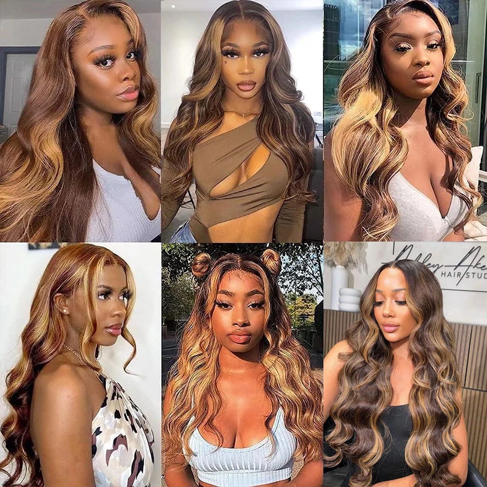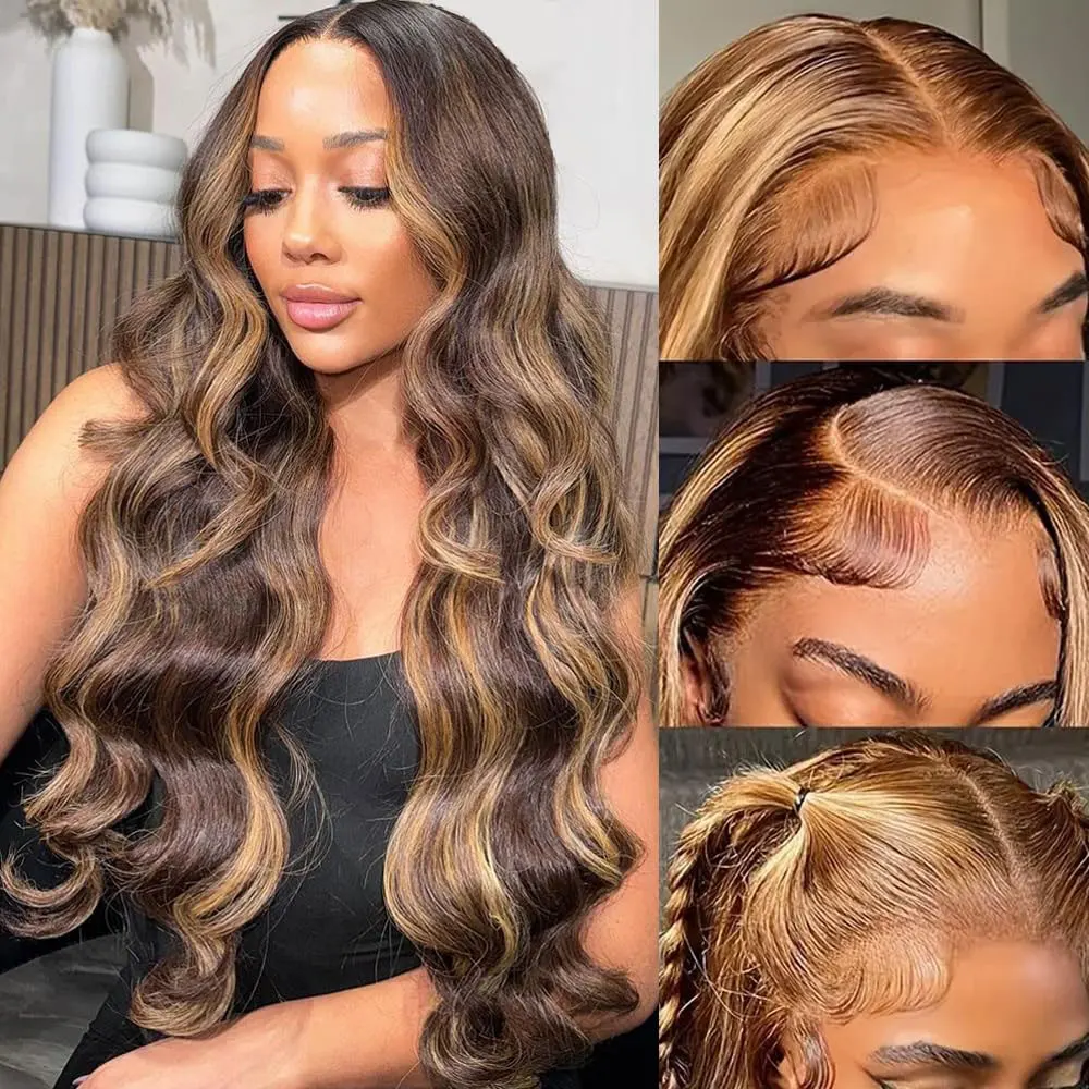 Honey Blonde Ombre Lace Front Wig 13X4 HD Lace Frontal Wig Body Wave Wigs Human Hair Pre Plucked 200% Density 4/27 Colored ![]() ![]() ![]() ![]() ![]() ![]() |