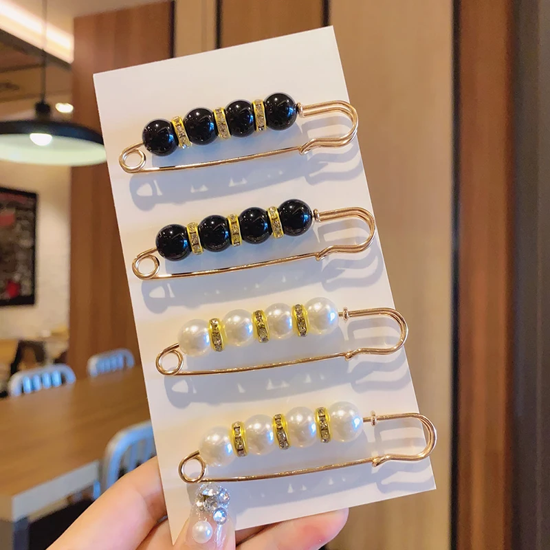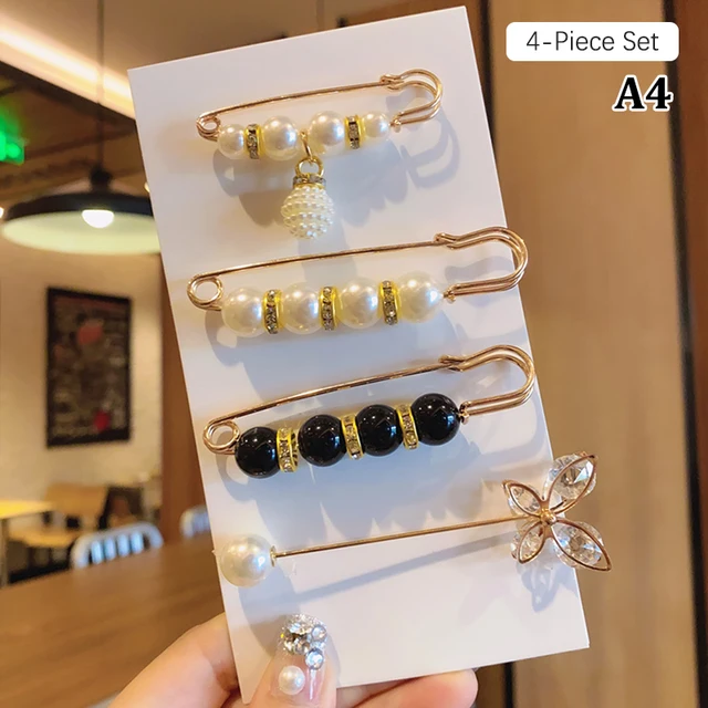 4/6Pcs Women's Clothing Brooch Set Pearl Rhinestone Brooches Jeans Skirt Waist F