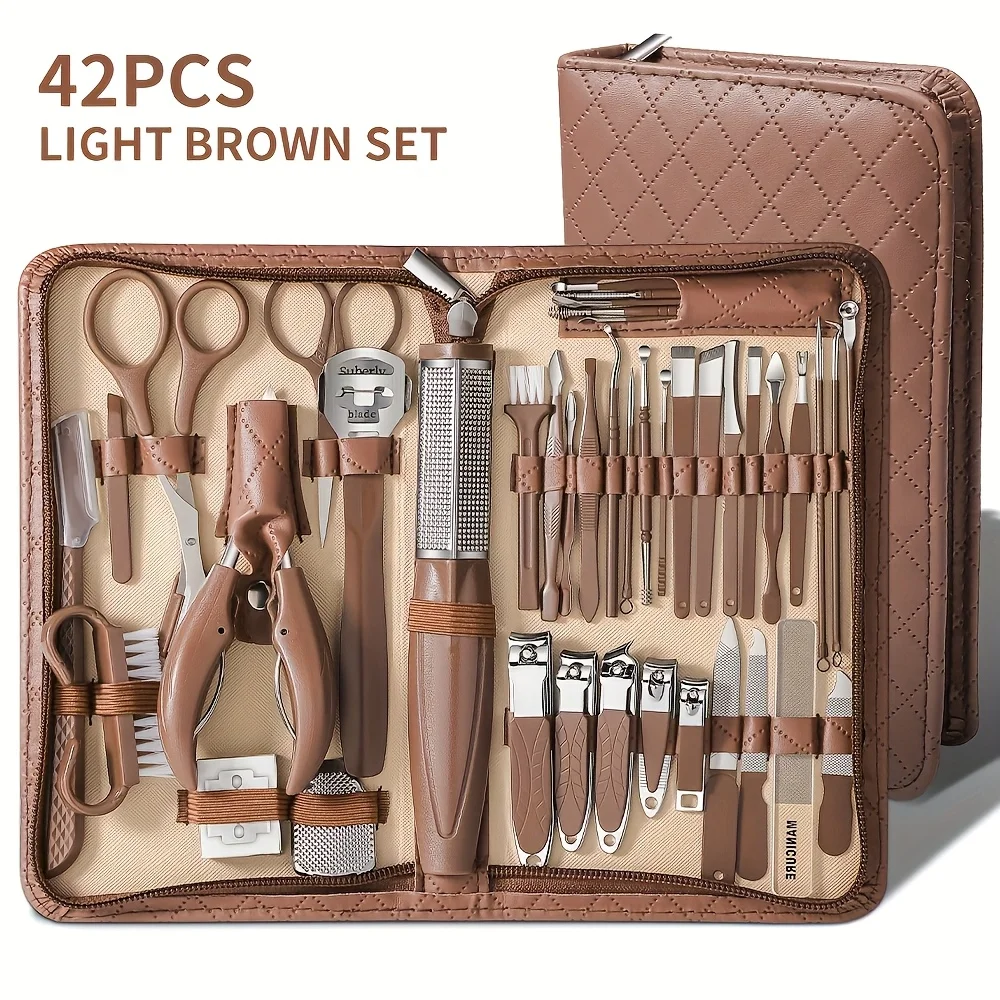 42pcs Set Brown Stainless Steel Nail Clipper Set Anti Splash Manicure Tools Home Portable Beauty Kit Foot Trimming Knife