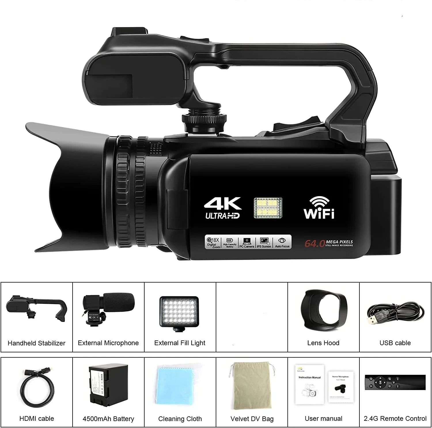4K Ultra Professional Camcorder HD 64MP Streaming For Tiktok YouTube Camera 4.0