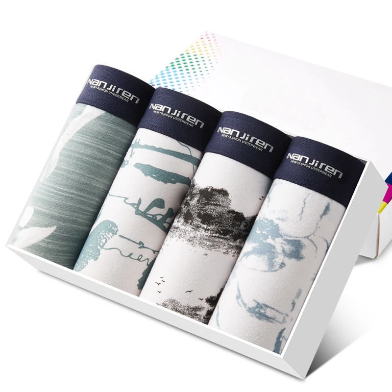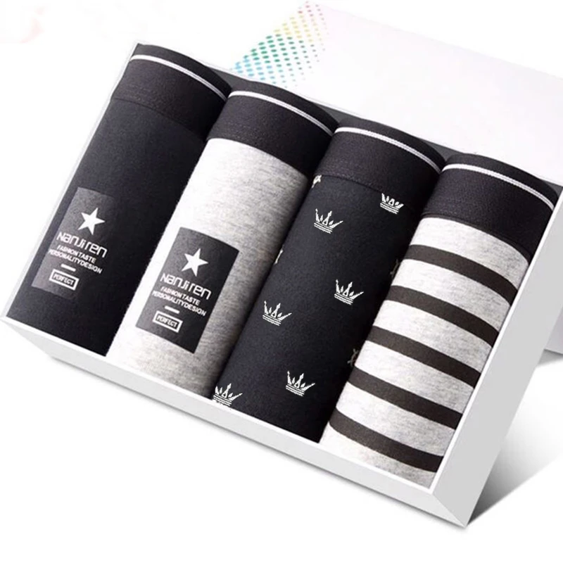 4Pcs Men's Boxer Shorts Cotton Underwear Sexy Panties Man Short Homme Underpants Male U Convex Lingerie