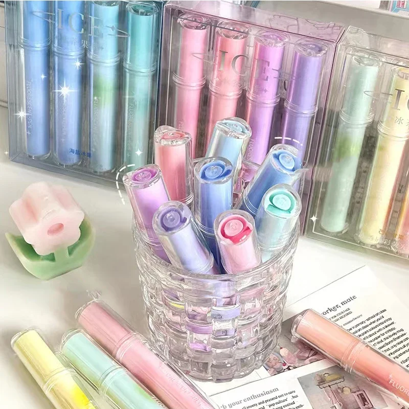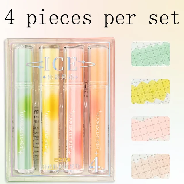 4Pcs/Set Brief Style lipstick Highlighter Pens Set Fluorescent Pen Art Markers S
