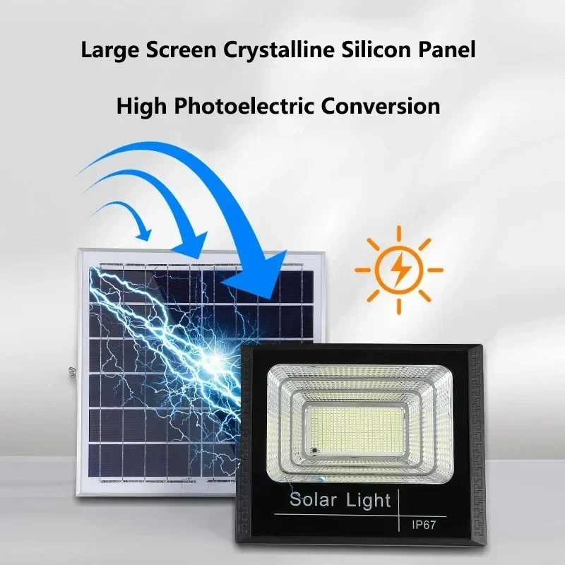 50-400W Solar Flood Lights with Remote Control, IP67 Waterproof Adjustable Spotlight for Outdoor Villa & Street Lighting