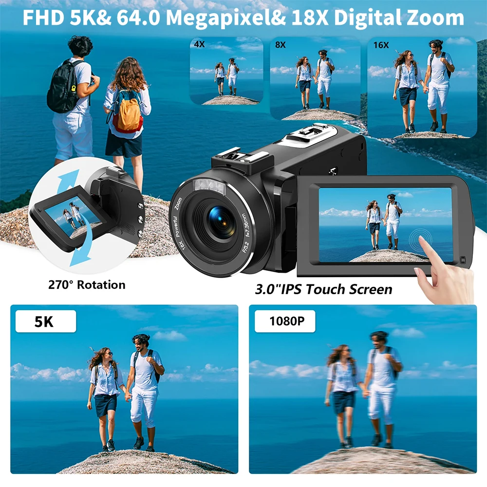 5K Ultra HD Digital Camera 60FPS 18X Zoom 3 Inch LCD Touch Screen Ultra HD WIFI