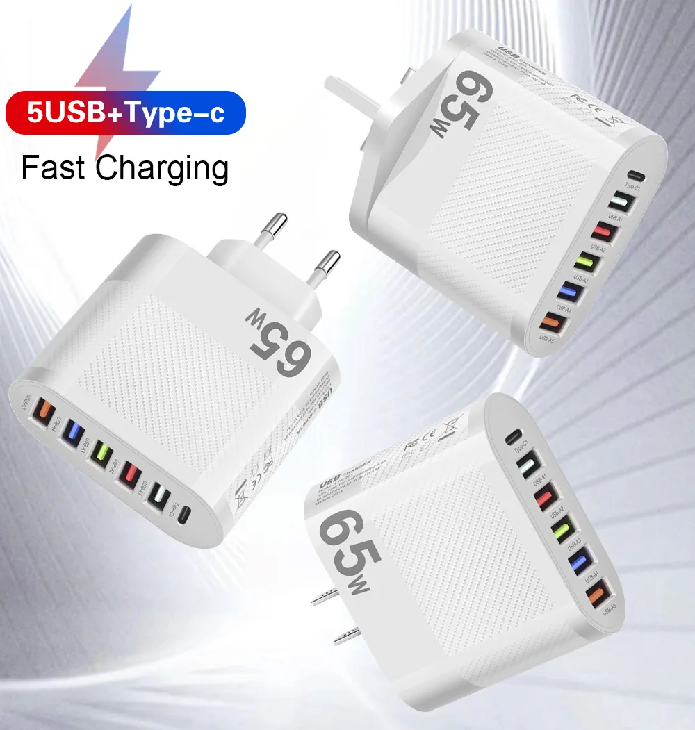 65W 5 USB Type-C Fast Charging Charger For iPhone Xiaomi Samsung Huawei Google Q