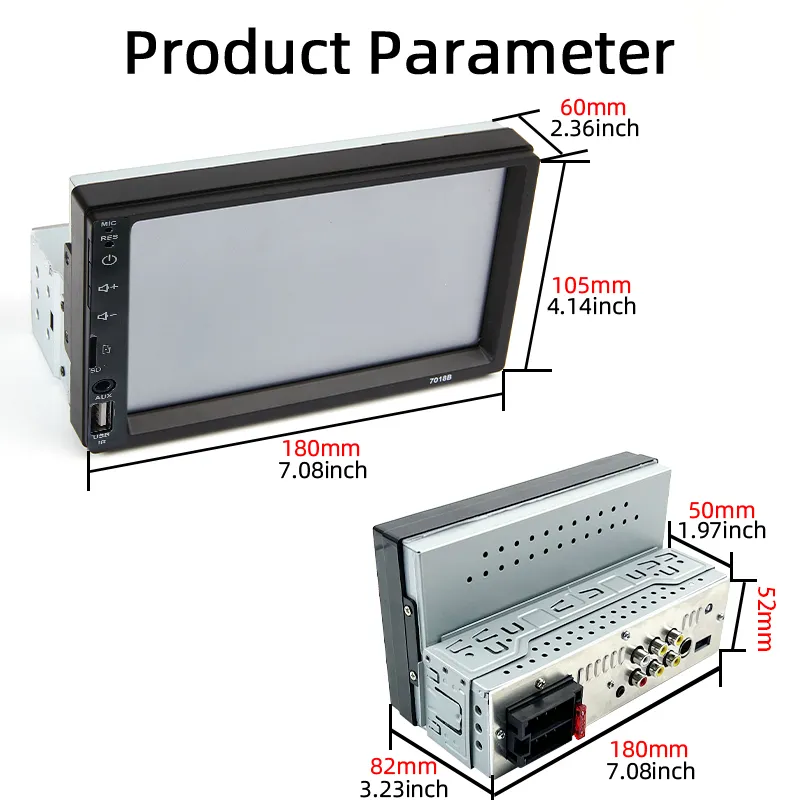 7 Inch Car Radio 1 Din MP5 Player Touch Screen Multimedia FM ISO Power Aux Input
