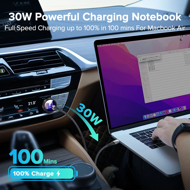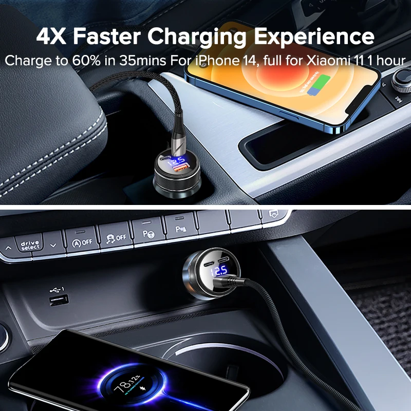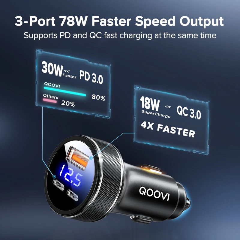 78W 3-Ports Car Charger PD USB Type C QC3.0 Phone Charger Fast Charging