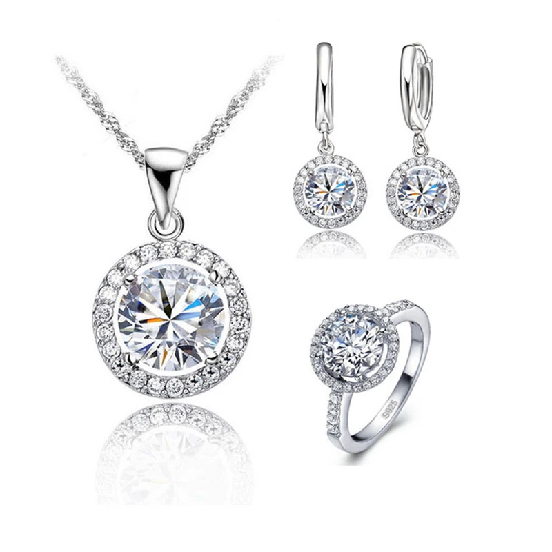 925 Sterling Silver Zircon Jewellery Sets Women Austrian Crystal Wedding Pendant Necklace Earring Ring Jewelry Set Lady