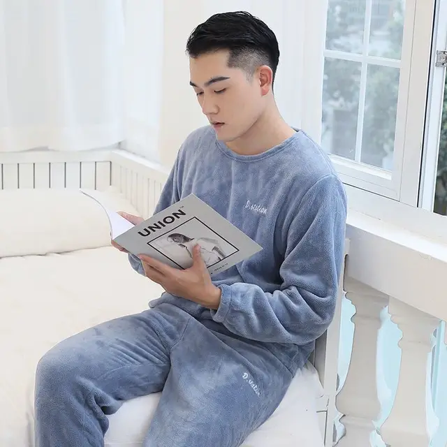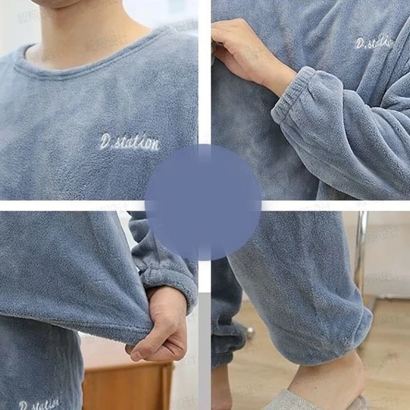 Autumn and Winter Coral Fleece Pajamas for Men's Thickened and Velvet Warm Youth