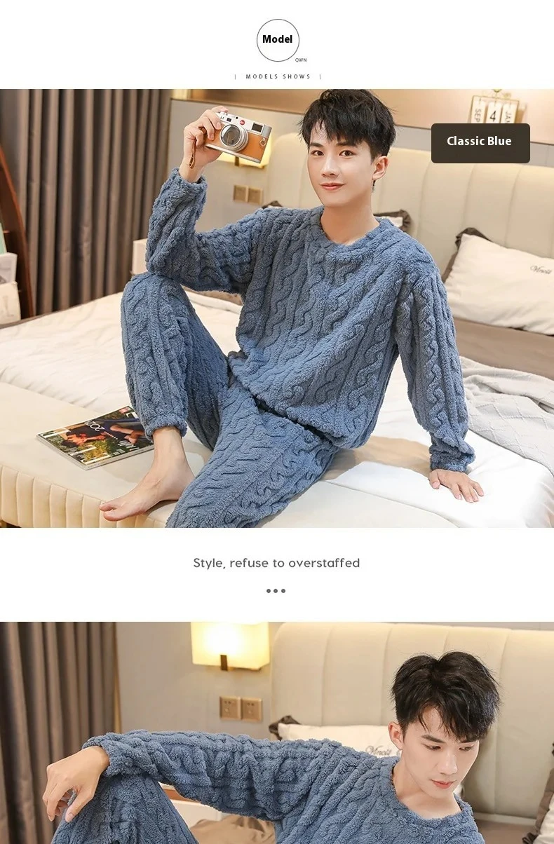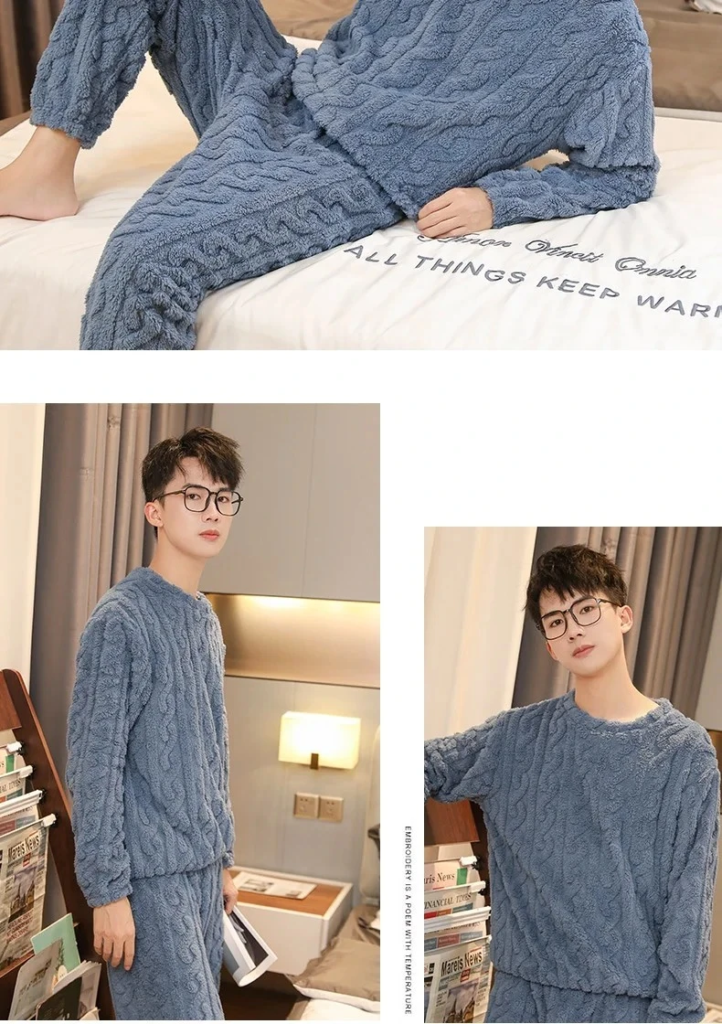 Autumn-Winter Thermal Pyjamas Jacquard Soft Cotton Flannel Warm Set 2025 Unisex Thickened Thermal Couple's Pyjamas Homewear Set