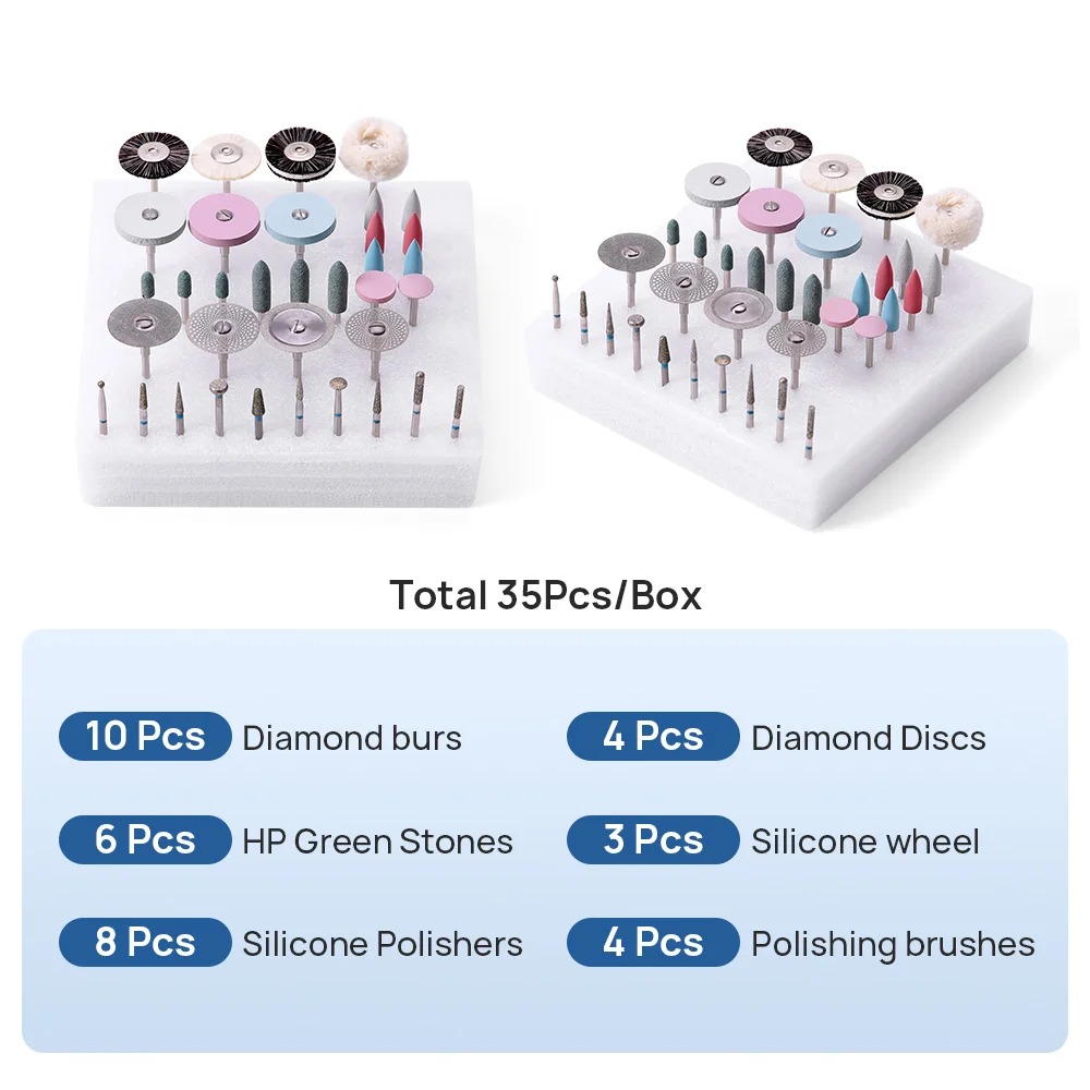 AZDENT Dental Polishing Kit Laboratory HP Polisher Set 2.35mm Shank Diameter Bur