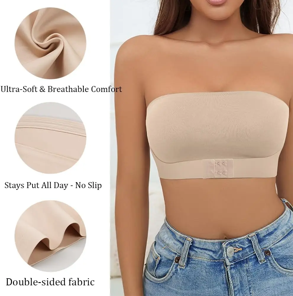 Black Skin Strapless Lingerie for Women, Anti Slip, Gathered, Small Chest, Big Anti Sagging, Strapless and Wrapped Bra