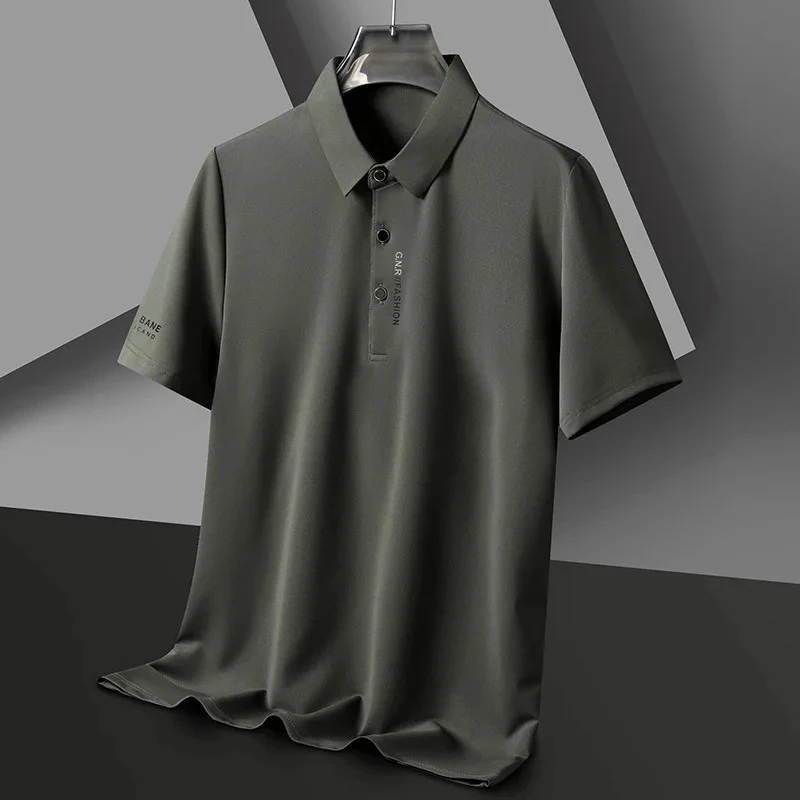High end brand ice silk short sleeve polo shirt men's summer new fashionable printed casual T-shirt comfortable cool golf top