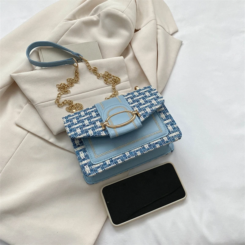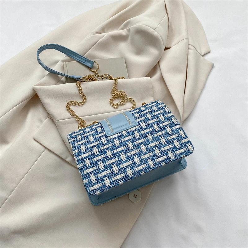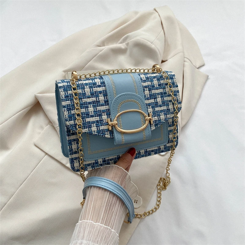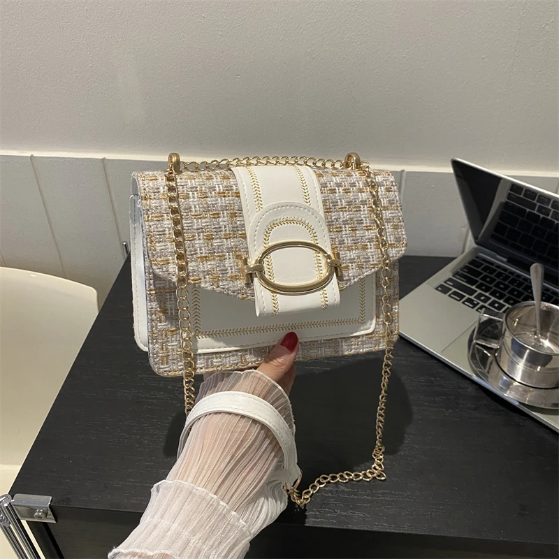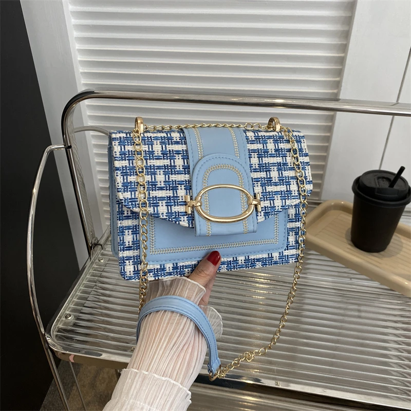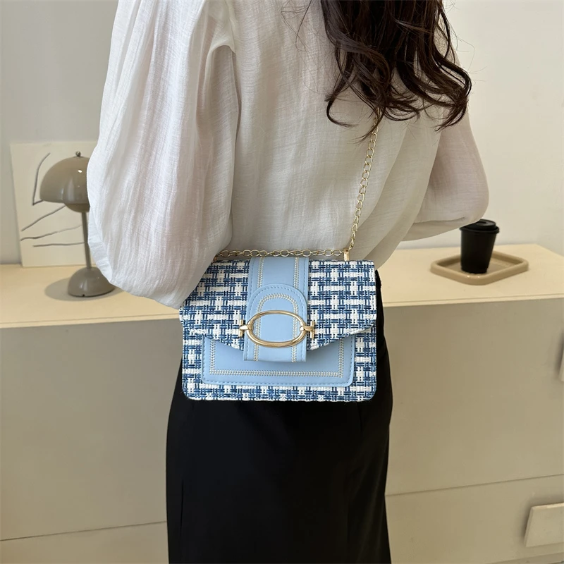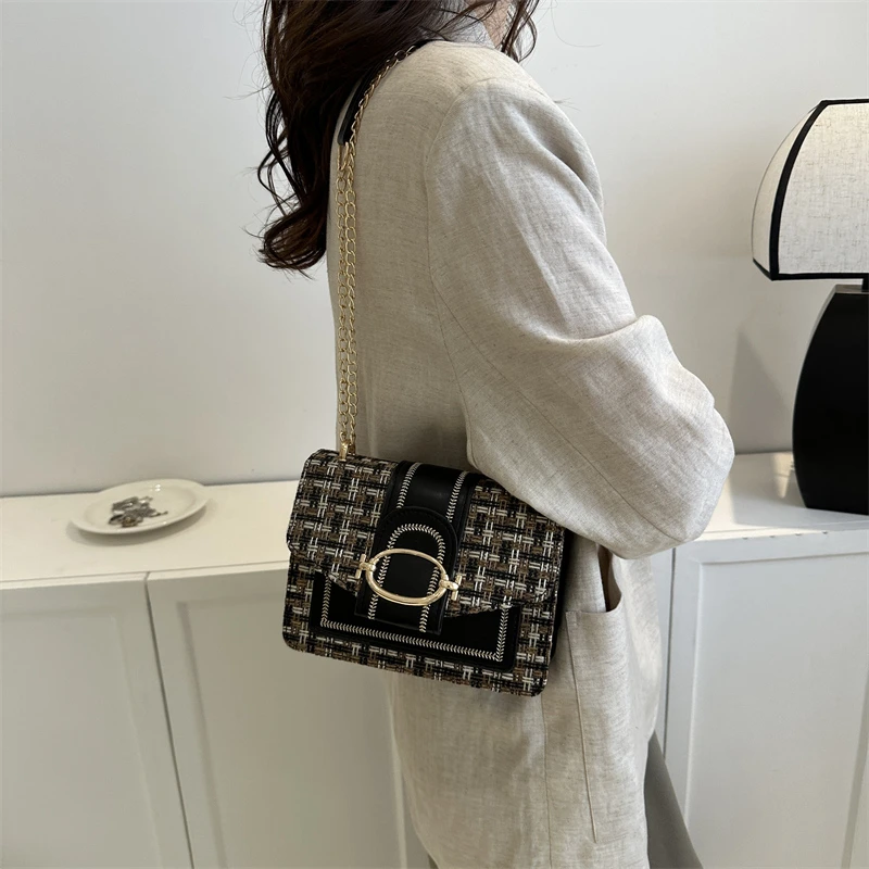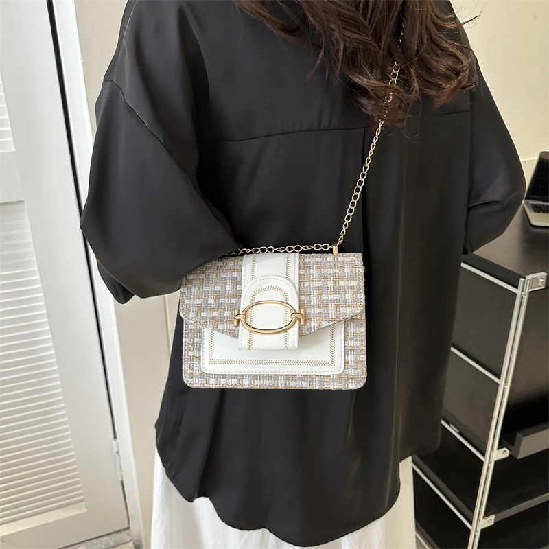 Checkered metal chain single shoulder bag, women's lock buckle, crossbody commuting small square women