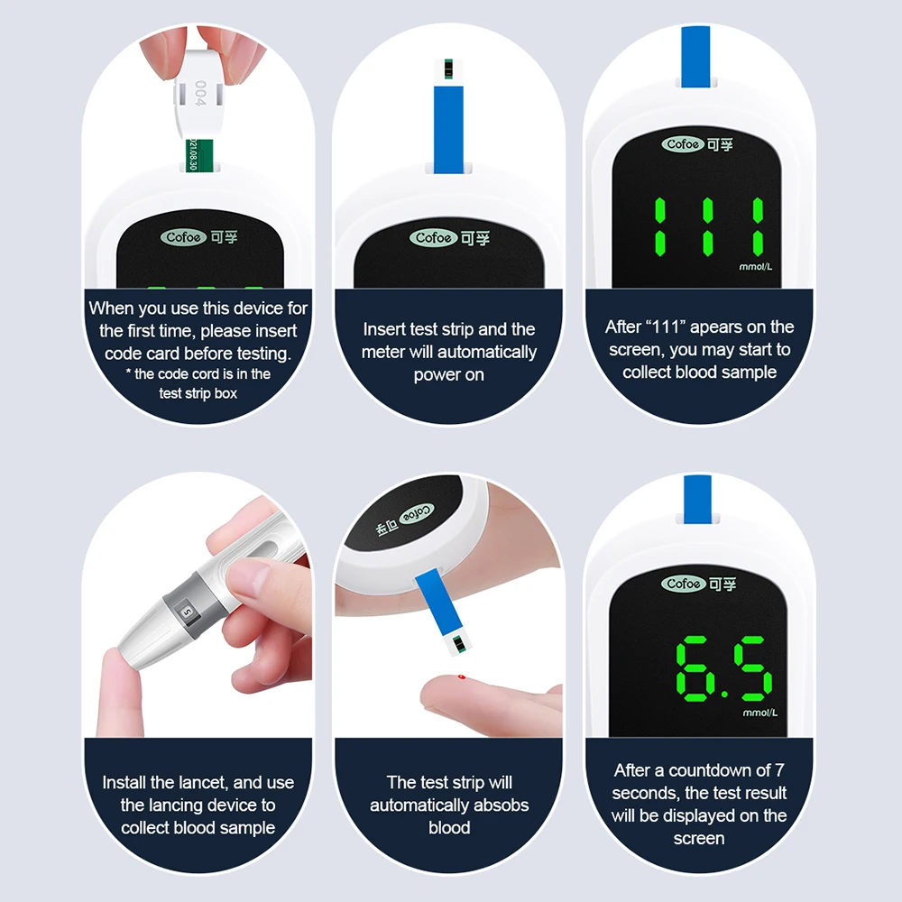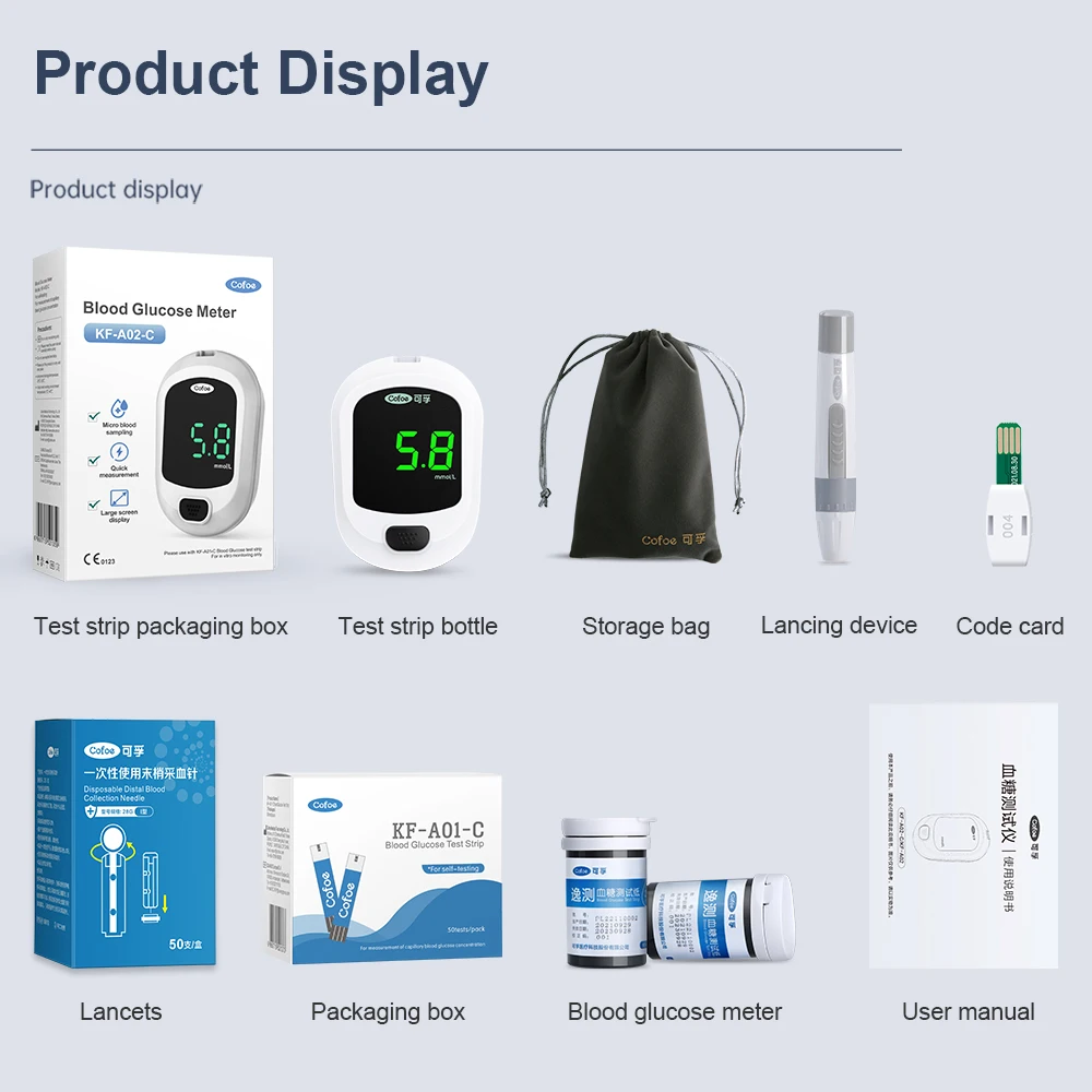 Cofoe A02-C Blood Glucose Meter Glucometer Kits Diabetes Tester 50/100 Test Stri