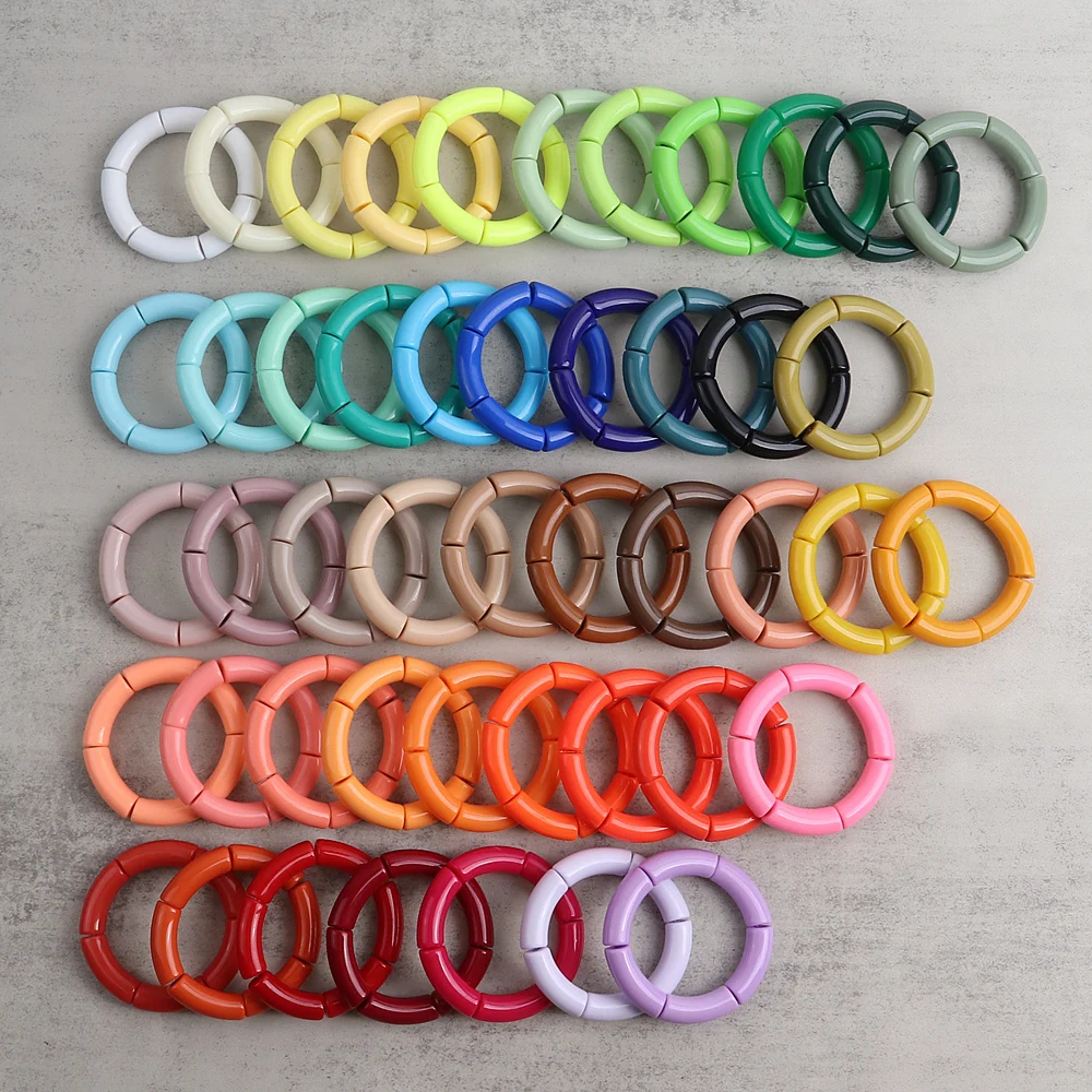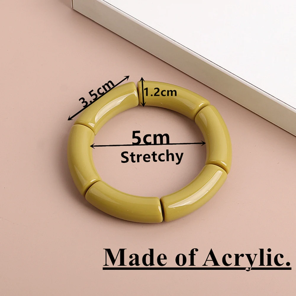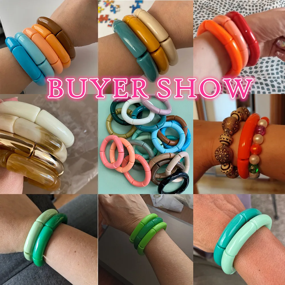 Colorful Acrylic Bamboo Shape Hand Bracelets for Women Bohemian Stretched Chunky