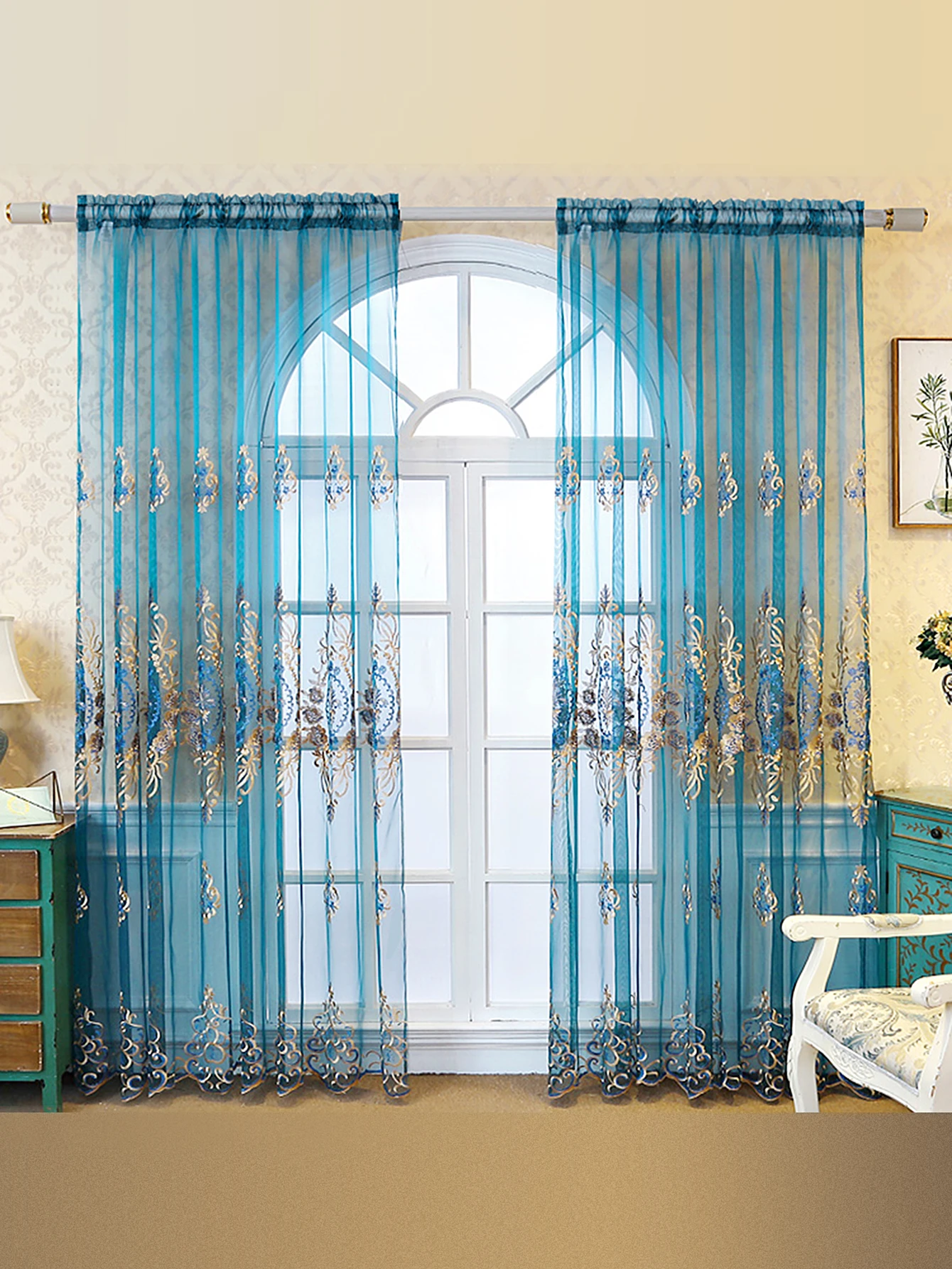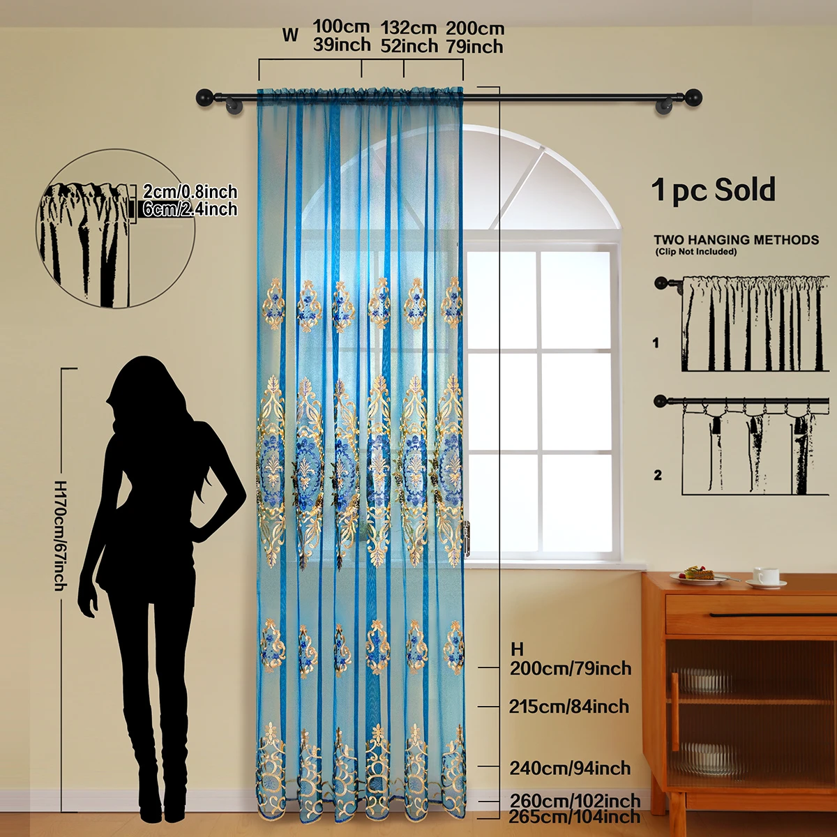 1pc Geometric Pattern Embroidery Curtain for Living Room Rod Pocket, European Lu