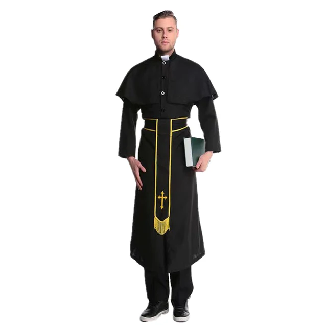 Dress up Dance Party Black Adult Priest Robe Men's Godfather Costume Halloween C