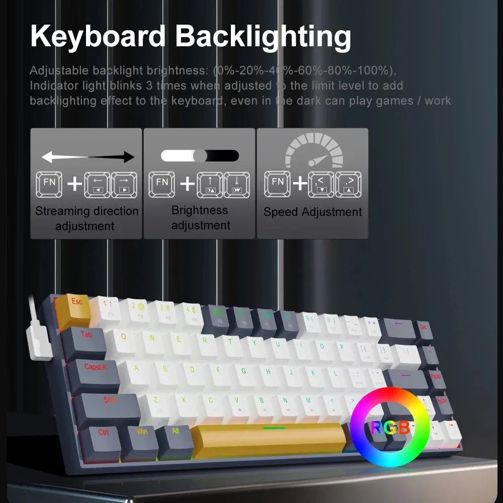 E-YOOSO Z686 RGB USB 60% Mini Slim Mechanical Gaming Wired Keyboard Red Switch 6
