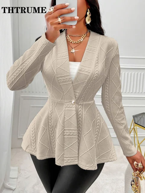 Elegant Women Chic Blazers Fashion White Single Breasted Long Sleeve Autumn Wint