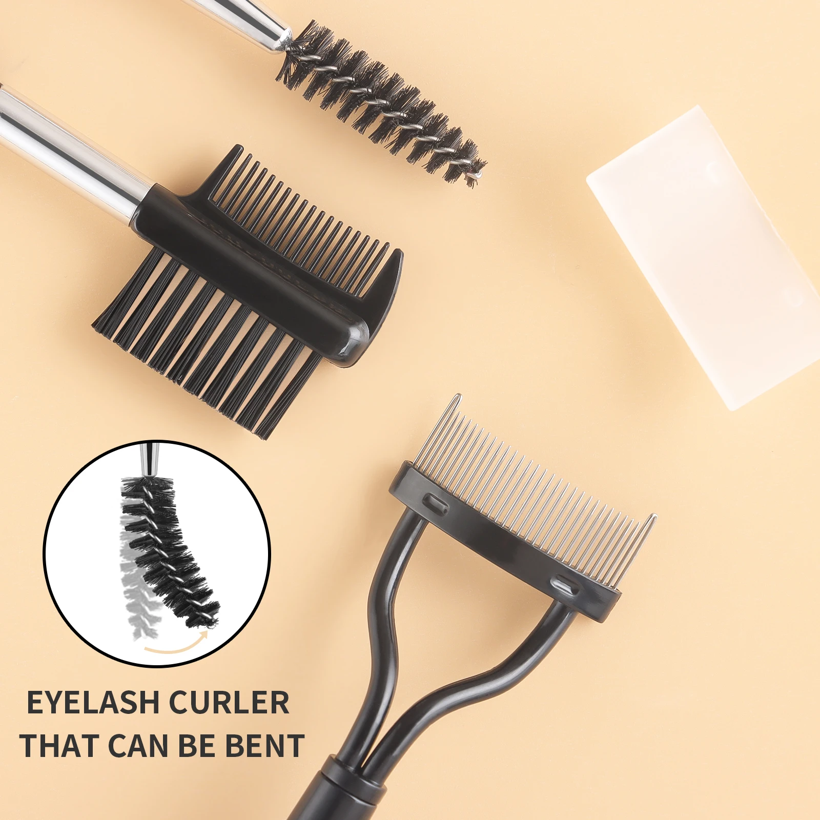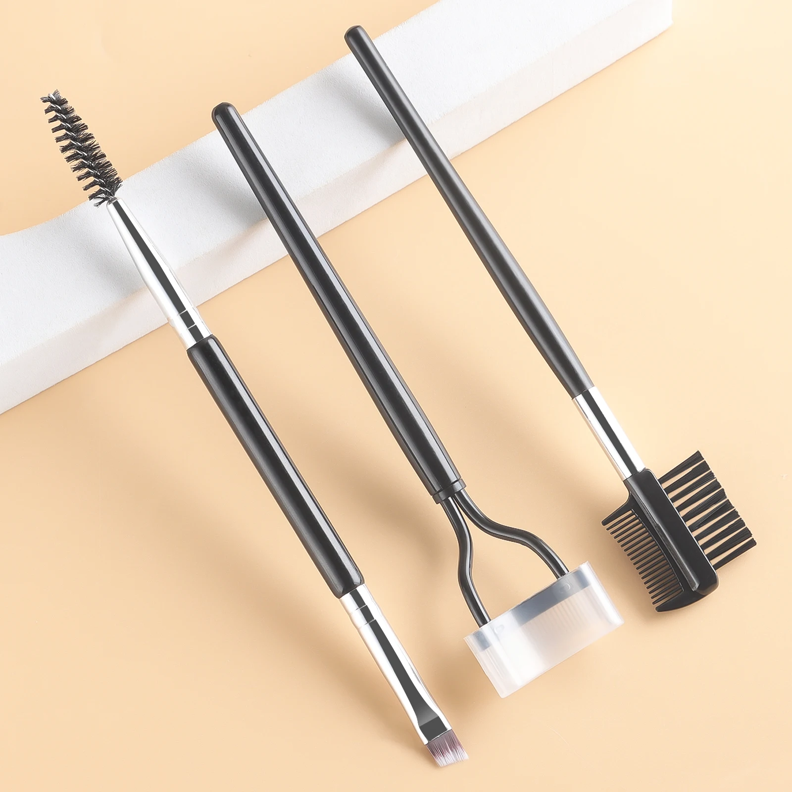 Eye Makeup Tool Set,3pcs Double Head Eyebrow Brush Eyelash Curl & Fine Eyebrow B