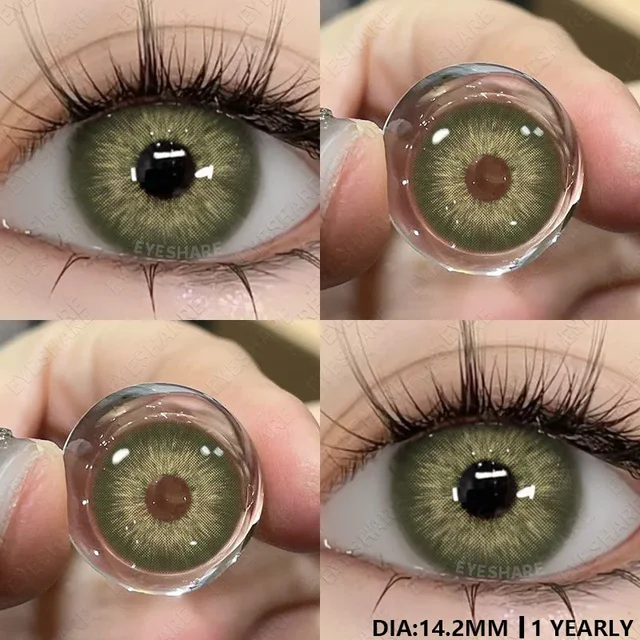 EYESHARE 1Pair Colored Contact Lenses with Prescription Green Myopia Lenses Gray