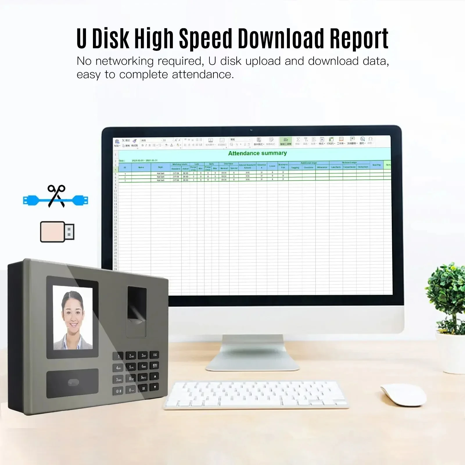 FA03 Face Attendance Machine Employee Fingerprint Check-in Machine Facial Recognition All-in-one Machine Punch Card Machine Attendance Type: Face + Fingerprint + Password