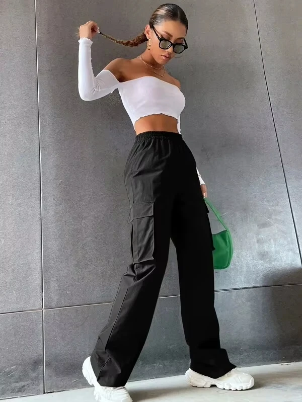 Fashion Women Baggy Joggers Pants Casual Communte Female Chic Straight Cargo Pant Elastic High Waist Elegant Oversized Trousers