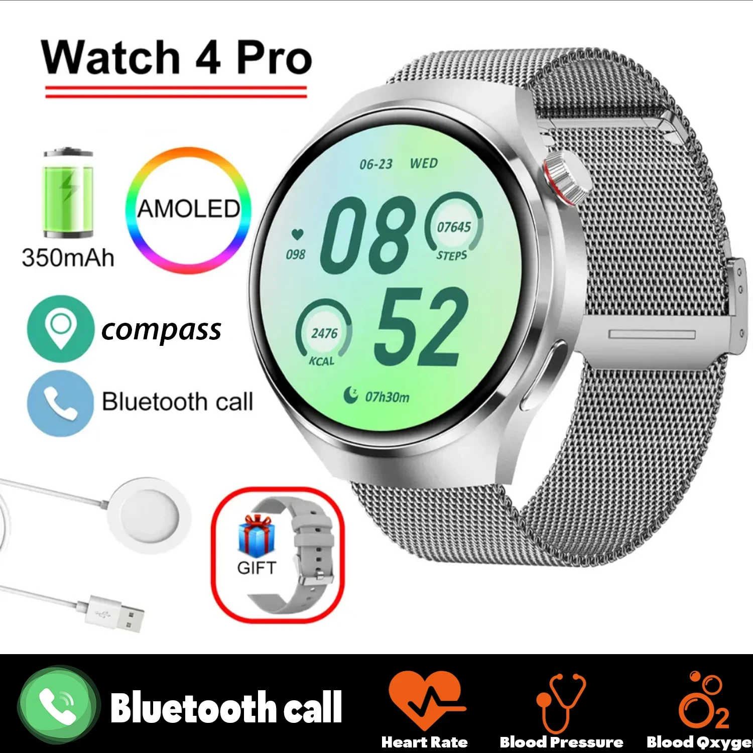 Product parameters: screen size:1.6 inches Waterproof Level: IP68 Life time: About 5-7 days of use and 30 days of standby Resolution:360*360 Battery capacity:300mAh APP: RDFit Charging Method: Wireless charging Compatible System: Android 4.4 or above, IOS 9.0 or above Features: High-definition Bluetooth Call, compass, off-screen pointer, cover hand off screen, custom picture, APP background download picture, QR code (download and connection two-in-one), find mobile phone, calendar, motion track, restart, message push, remote Camera, Alipay, sleep monitoring, altitude, body temperature monitoring, weather, blood pressure, voice assistant, my QR code, button definition settings, blood oxygen, breathing, dial, pedometer, timer, menu style, factory reset, Settings (Smart Island, Drainage, Power Saving Mode, Screen Off Time, Raising Wrist to Brighten Screen, NFC, Brightness, Button Definition, Vibration Intensity, Do Not Disturb Mode, Password Settings, Language, Time and Date Settings, Connecting to APP, Factory Reset, Restart , Power Off, About), Phone (Contacts, Call History, Dialpad, Call Settings, Emergency Call), Calculator, Heart Rate, Language Selection, About Watch Information, Alarm Clock, Sports Mode, Bluetooth Music, Bluetooth Calls, Stopwatch, Off Screen time, vibration intensity, time and date setting, password lock. Drop-down menu: Bluetooth switch, do not disturb mode, brightness adjustment, one-key lock screen, weather, shutdown, payment code, Douyin, Alipay, always-on setting, NFC, settings, alarm clock, vibration switch, menu style, factory reset. Swipe up menu: message push. Swipe right: split screen (weather, sleep, heart rate, blood pressure, blood oxygen, music, common applications). Swipe left: Add applets (heart rate, blood pressure, sleep monitoring, blood oxygen, exhalation training, step counting, weather, music, body temperature monitoring). Watch supported languages: 1. Chinese, 2. English, 3. Russian, 4. Spanish, 5. German, 6. Italian, 7. French, 8. Portuguese, 9. Polish, 10. Dutch, 11. Greek, 12. Turkish, 13. Romanian, 14. Japanese, 15. Traditional Chinese, 16. Hebrew, 17. Czech, 18. Slovak, 19. Hungarian, 20. Arabic, 21 .Indonesian, 22. Korean, 23. Vietnamese, 24. Thai, 25. Persian, 26. Ukrainian, 27. Malay, 28. Burmese Package: smart watch*1 charging cable*1 user manual*1 original box*1 After receiving the watch, please charge it first. Because after a long period of logistics, the watch has a low battery. Before using, scan the QR code in the manual to download the app and connect it to the watch with APP.
