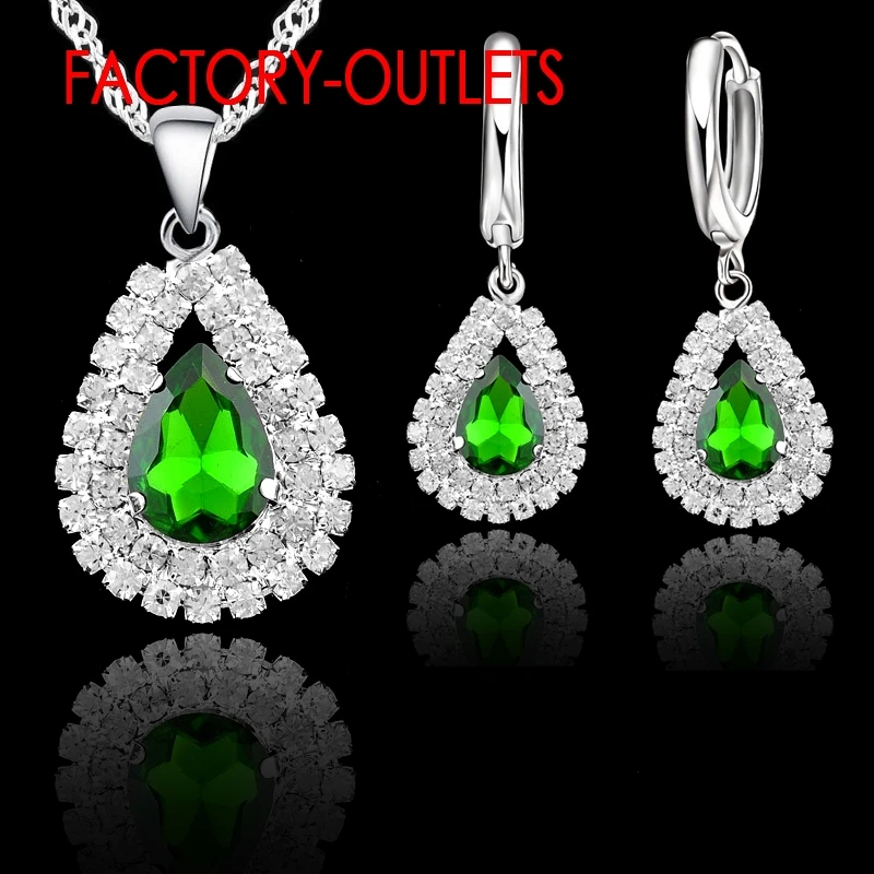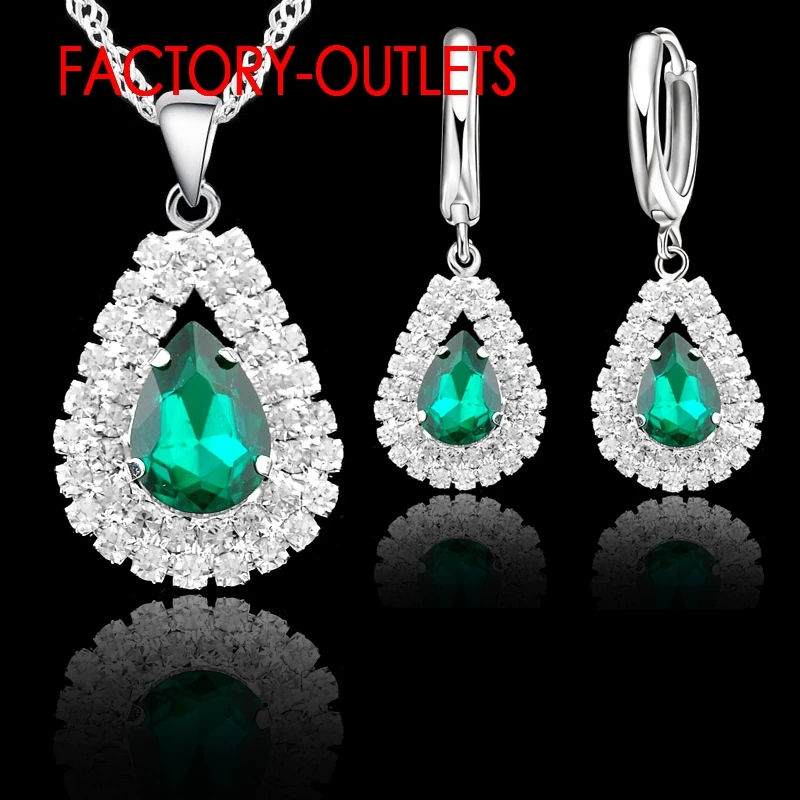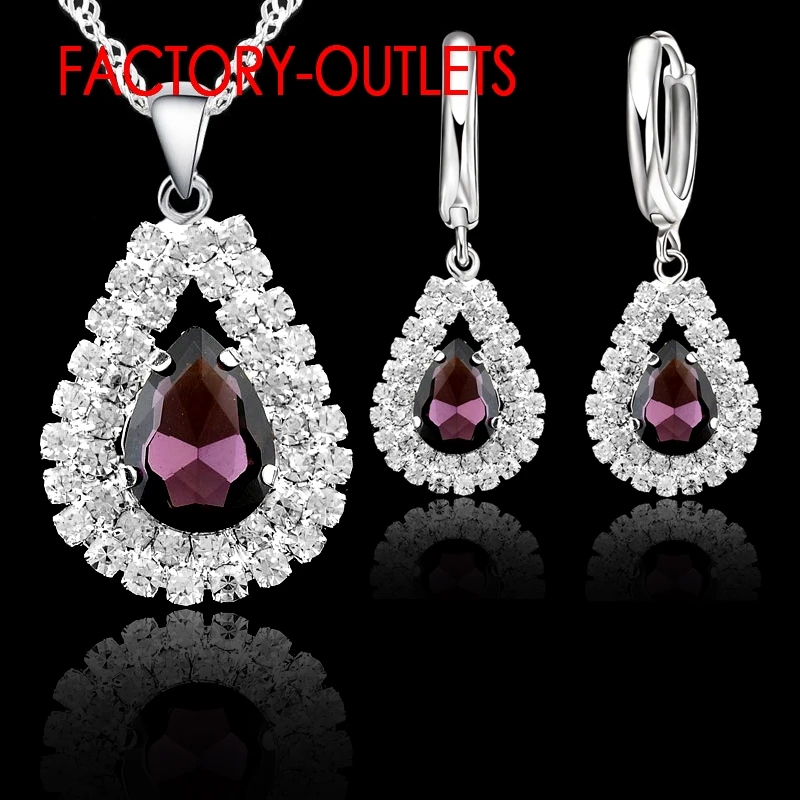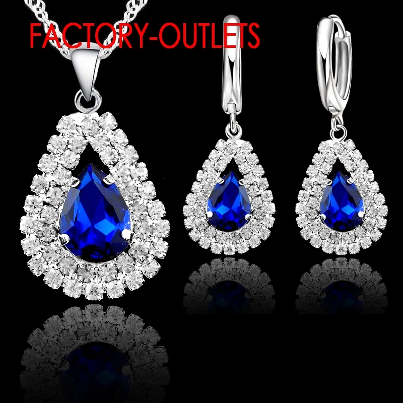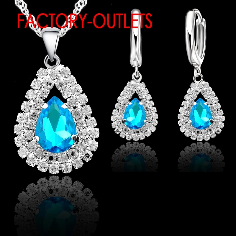 Genuine 925 Sterling Silver Bridal Jewellery Sets Shiny Crystal Water Drop Necklaces, Hoop Earrings Women's Party Engagement