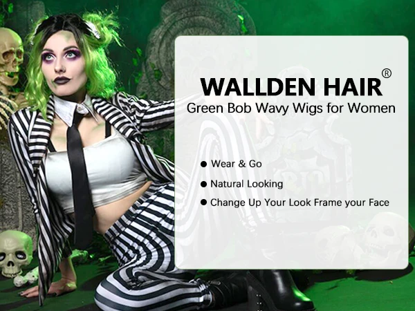Green Bob Wigs for Women Synthetic Short Wavy Curly Wig Ombre Wigs St.Patrick's Day Wig Party Halloween Cosplay Wig