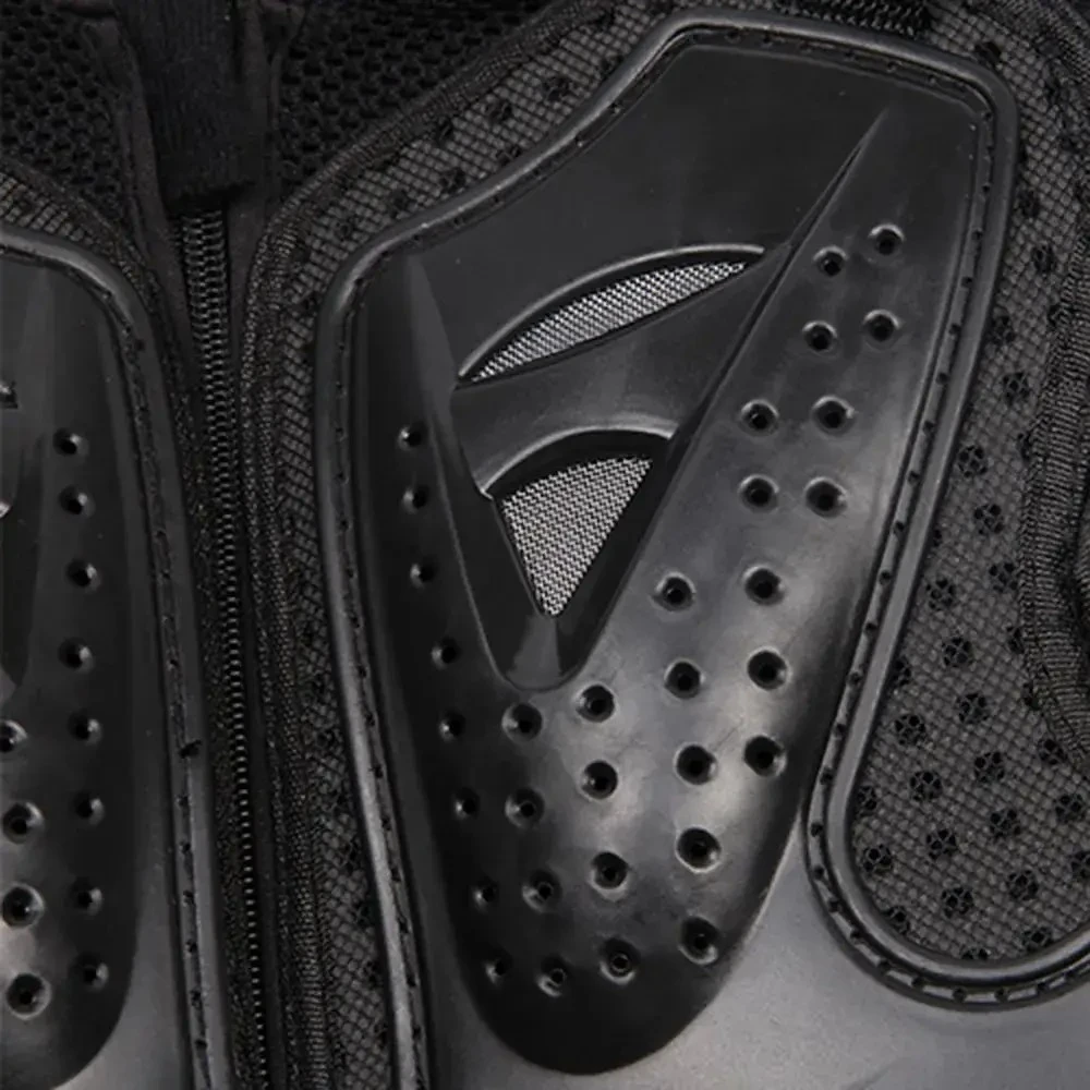 1. Core security protection technology High strength composite material Impact resistant outer layer: Made of aramid fiber (Kevlar) or fiber-reinforced TPU material, certified by CE 1621 safety, it can resist high-speed impacts (such as gravel splashes and drop cushioning). 2. Inner cushioning system: EPS honeycomb structure+memory sponge, dispersing impact force to the whole body, reducing the risk of injury to key areas such as ribs and spine. Three dimensional protection for key areas Thickened shoulder and elbow pads: 3D three-dimensional cutting fits the joints, avoiding fractures or misalignment when riding or falling off a bike. 3. All day comfortable experience Ergonomic optimization Modular splicing design: Tailored according to the riding posture in different areas (such as neck hollowing and waist tightening straps), allowing for prolonged sitting without compressing internal organs, reducing fatigue from long-distance cycling. 4. Breathable heat dissipation system: Mesh fabric under the armpits/back+flow channel design, suitable for different seasonal needs. 5. Lightweight and Flexibility Weight control: The overall weight is ≤ 1.5kg (average of 3kg+for similar products), which does not affect the handling flexibility. Joint freedom of movement: The shoulders and elbows are connected by hinges or elastic fabric, ensuring no sense of restraint when cornering at high speeds.