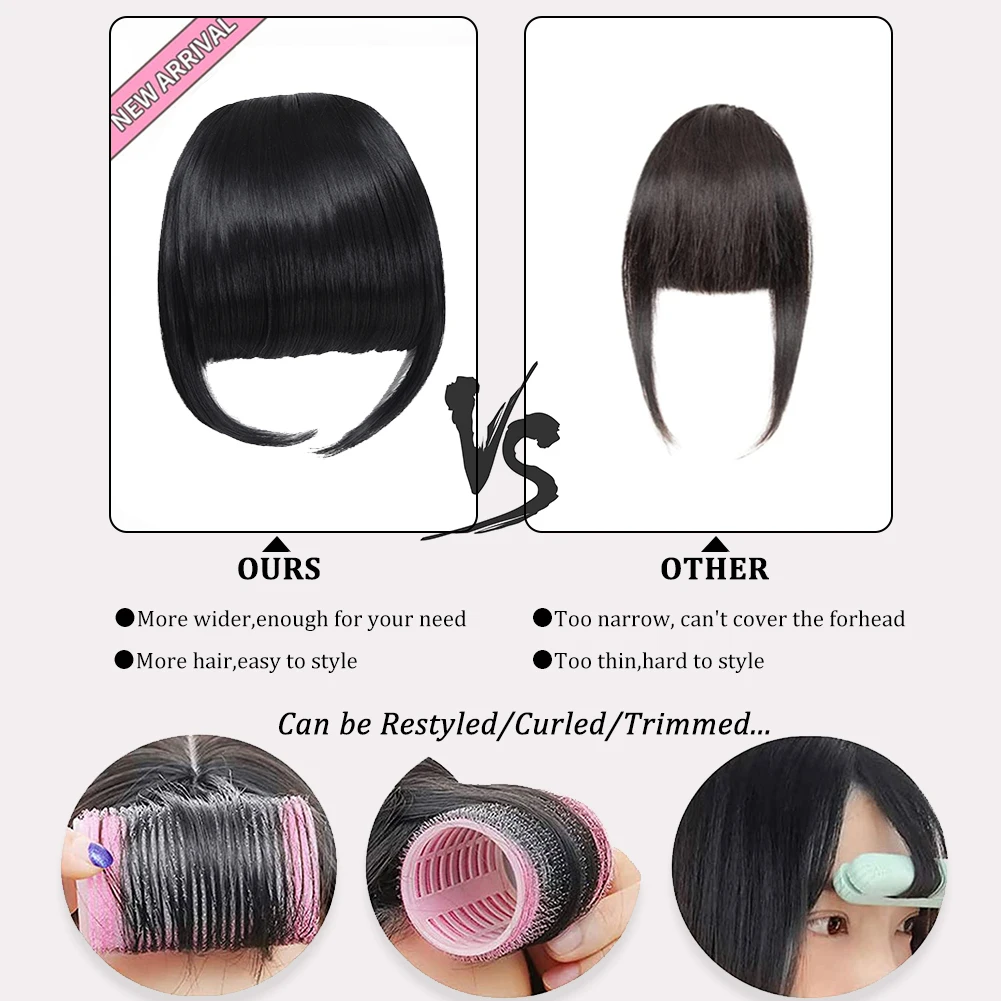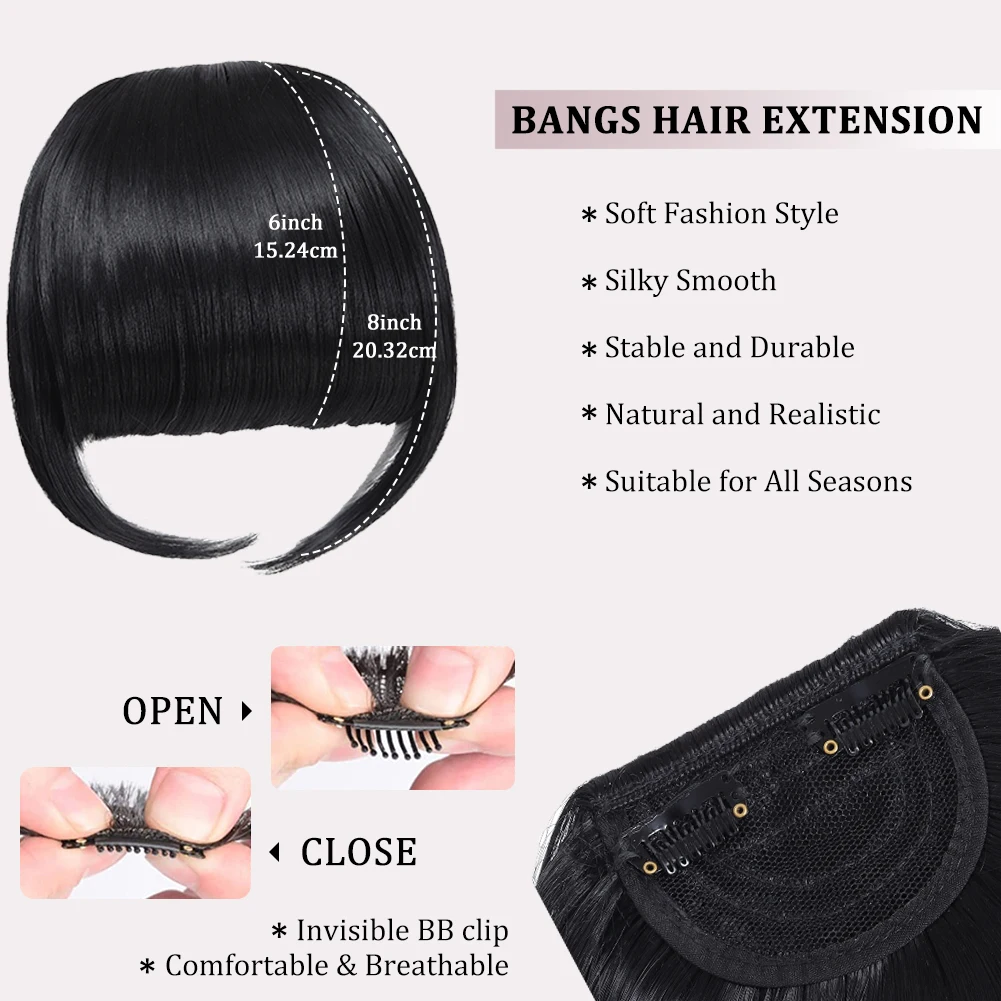 High Quality Synthetic Wig Flat Bangs Hair Extension Clip in Bangs with Temples