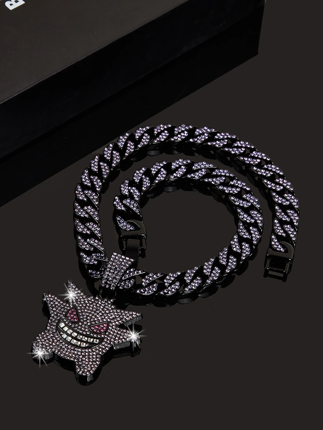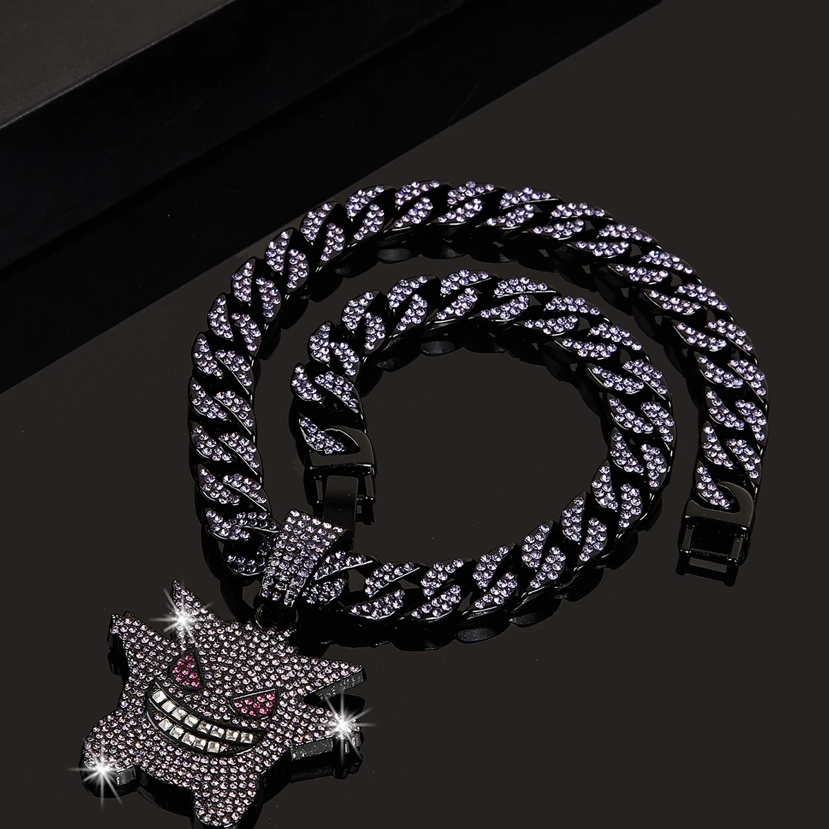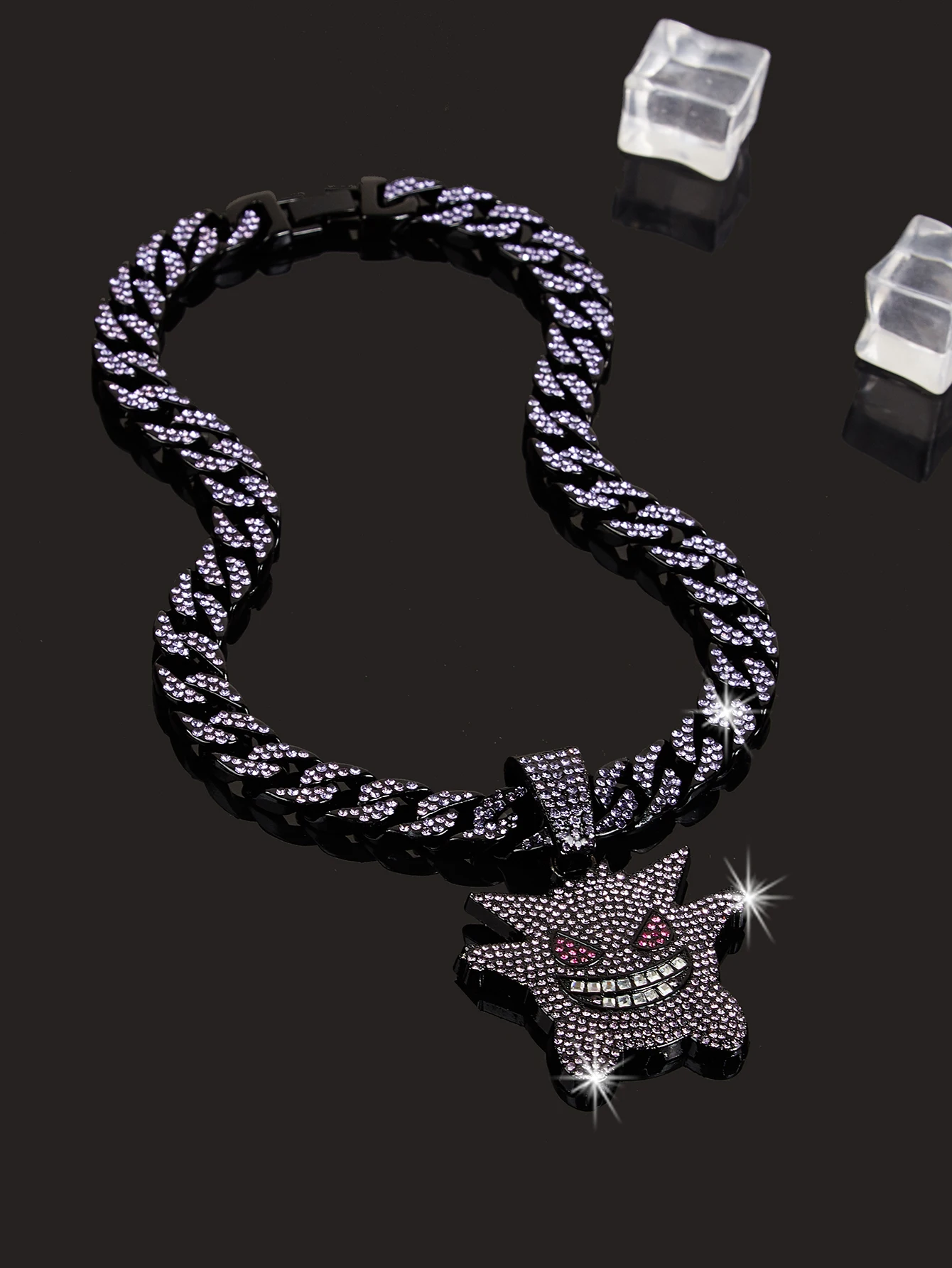 Hip Hop Men Purple Ice Cuban Necklace Punk Kleinstone Purple Small Devil Pendant